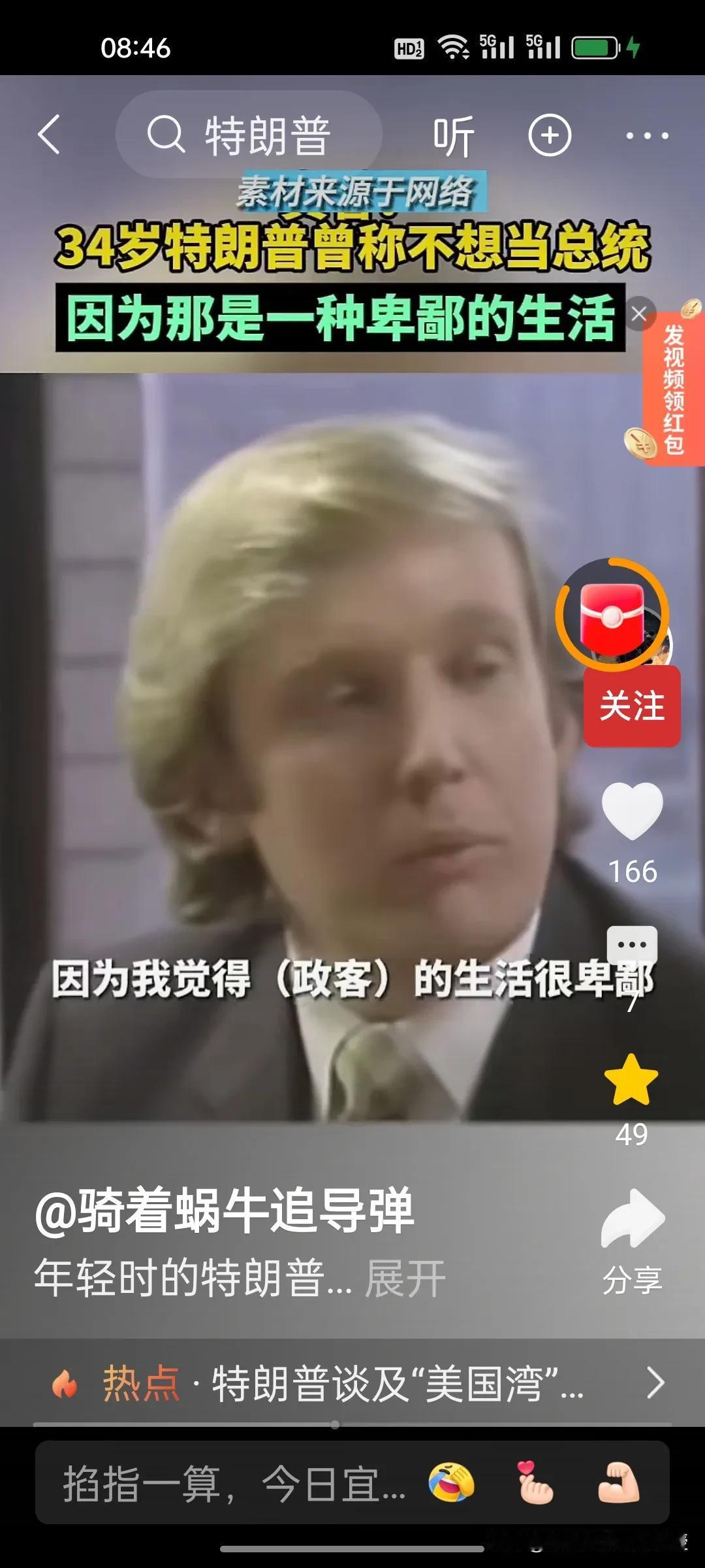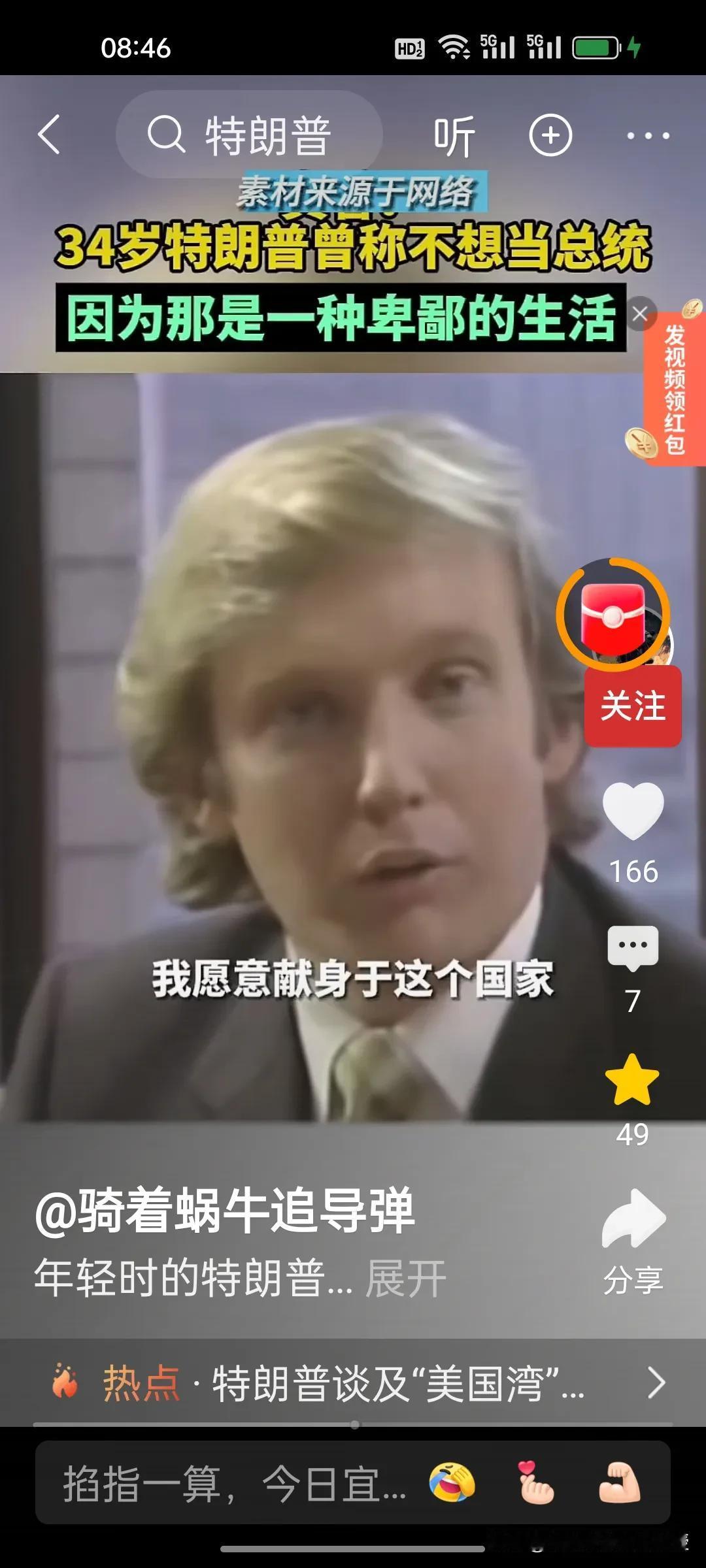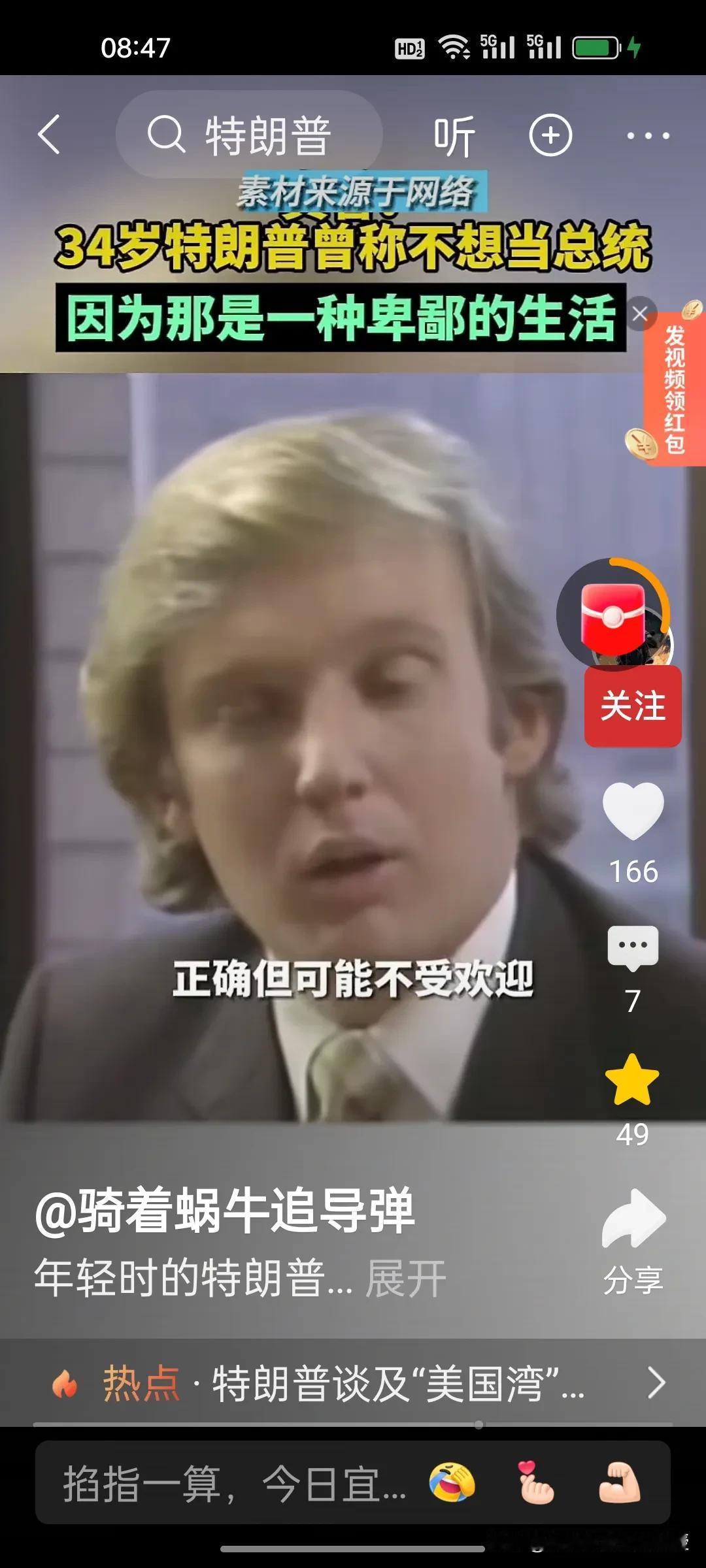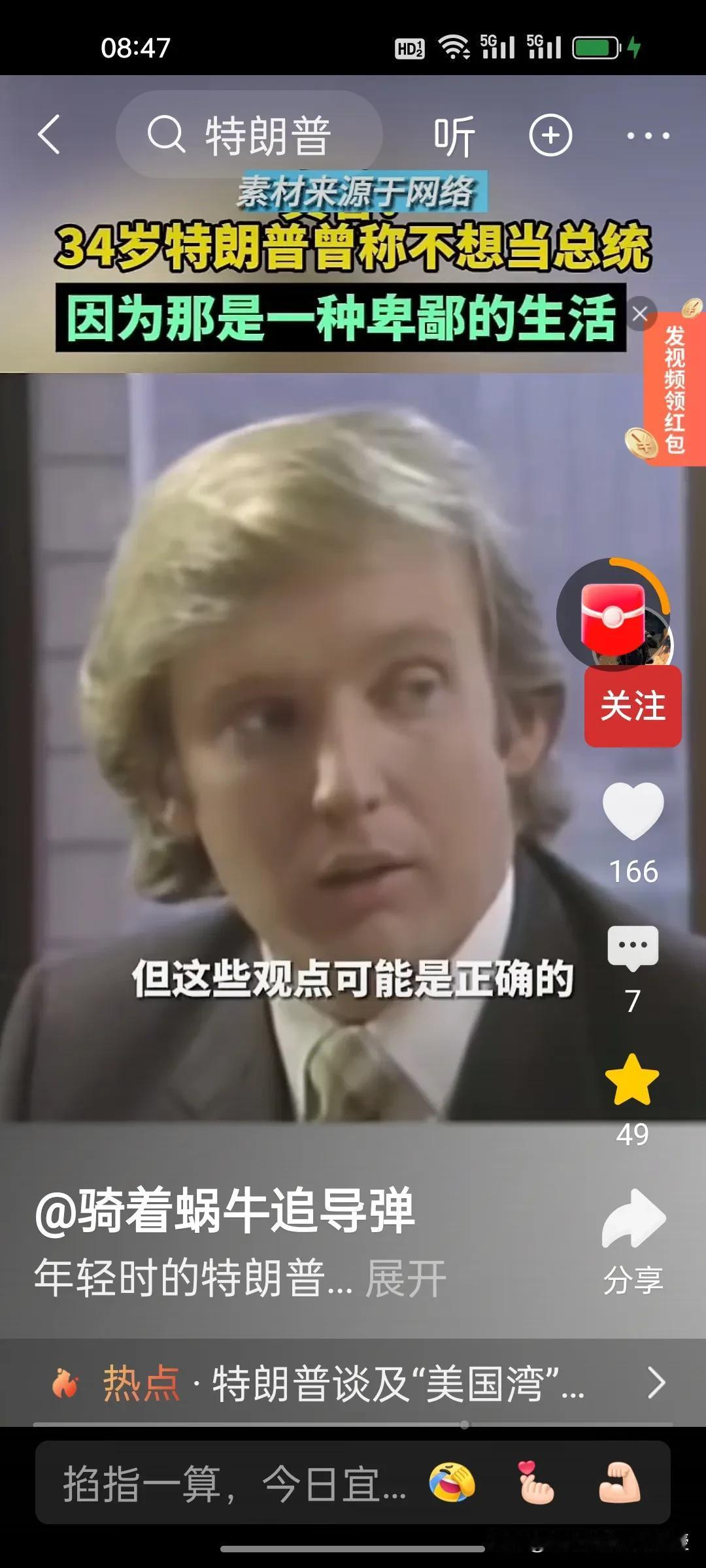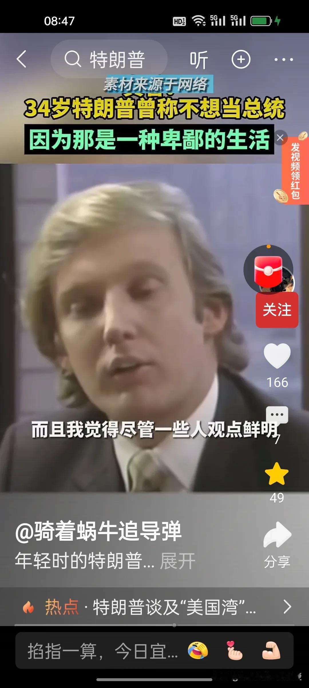 1980年,34岁的特朗普接受媒体访谈时称自己不想当美国总统,因为他觉得政客的生活很卑鄙,有些政客的观点是正确的,但是不受欢迎。他希望能够看到一位称职的美国总统。1980年的时任总统是卡特,同年里根获得胜选。 特朗普做梦也没想到36年后,2017年,70岁的特朗普竟然成功当选第45任美国总统,时隔四年后还又续四年。自己也终于活成了自己年轻时讨厌的样子,喜欢各国给自己送礼,比如看到了瑞士送的刻字金条和金色时钟就马上把关税从39%降到了15%。