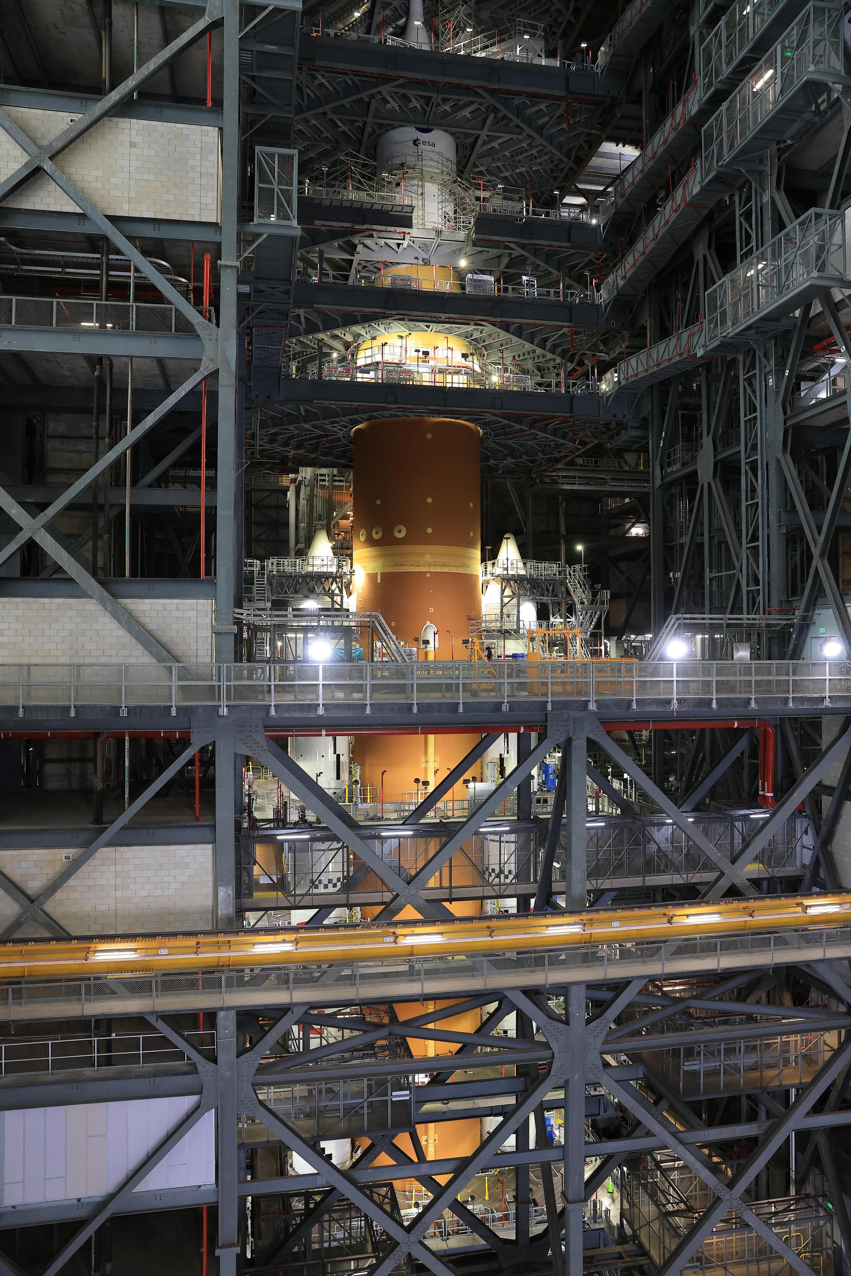 太空发射系统(SLS) 火箭已经完成总装工作,计划最晚于2026年4月发射,此次任务将执阿尔忒弥斯二号载人绕月飞行。