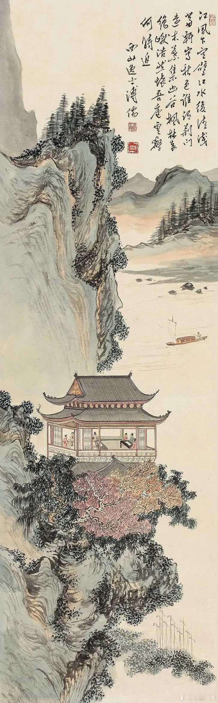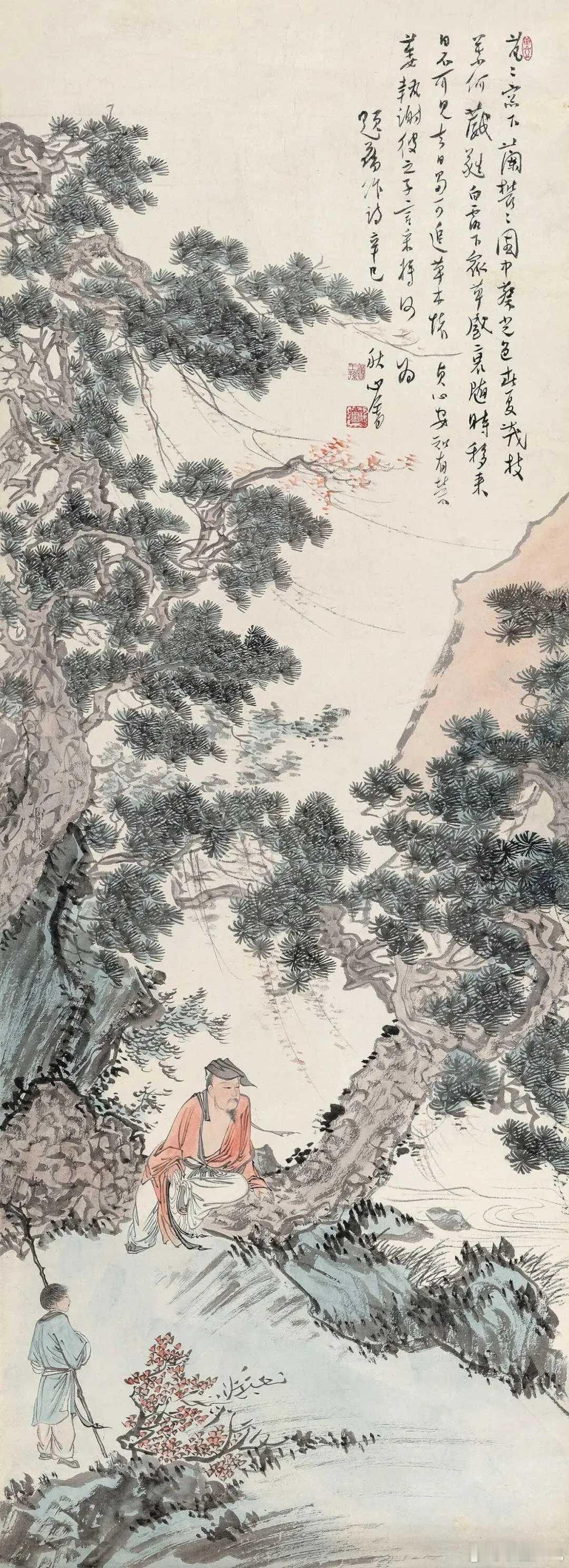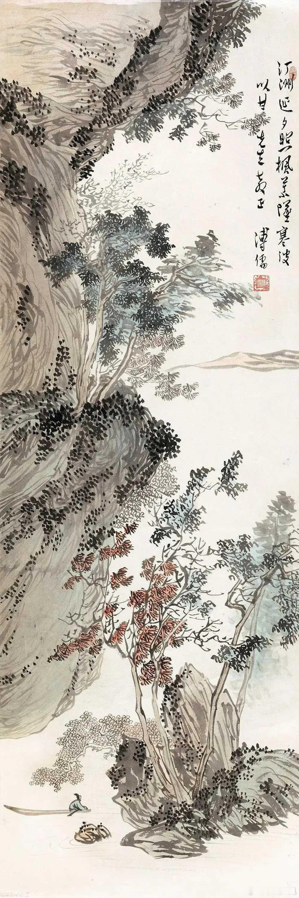 溥儒的画。溥心畬(1896年9月2日—1963年11月18日),满族,原名爱新觉罗·溥儒,初字仲衡,改字心畬,自号羲皇上人、西山逸士,北京人,著名书画家、收藏家。为清恭亲王奕訢之孙。曾留学德国,笃嗜诗文、书画,皆有成就。画工山水、兼擅人物、花卉及书法,与张大千有“南张北溥”之誉,又与吴湖帆并称“南吴北溥”。