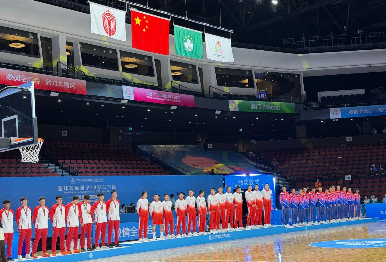 “11月18日晚,全运会五人篮球U18组别决赛在澳门新濠影汇综艺馆落下帷幕。广东U18男篮以85:78战胜山东U18男篮,勇夺桂冠,为广东省代表团增添了一枚金牌。这是广东队继十三运U18、十四运U19夺冠后,再一次在青年组别夺冠,缔造了全运会青年篮球赛事的“三连冠”传奇。