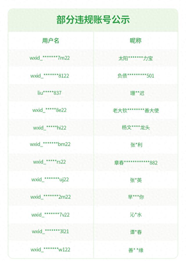 上述行为一经发现核实,平台将依据国家相关法律法规以及《腾讯微信软件许可及服务协议》《微信个人账号使用规范》等平台协议及规则,视违规严重程度对相关账号进行阶梯式处理,多次违规者有可能永久限制登录,对确认违规的微信群,进行停用群功能处理。
