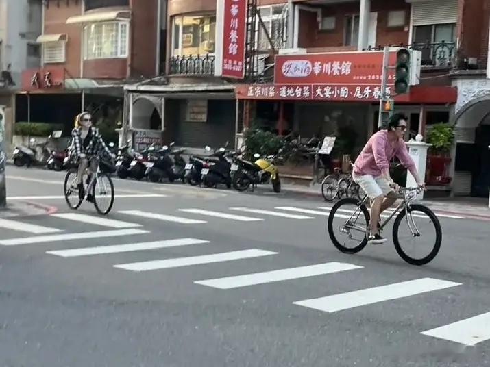 有网友在台北偶遇邱泽和许玮甯骑车,生完宝宝,身材恢复的也太好了!看这大长腿,夫妻