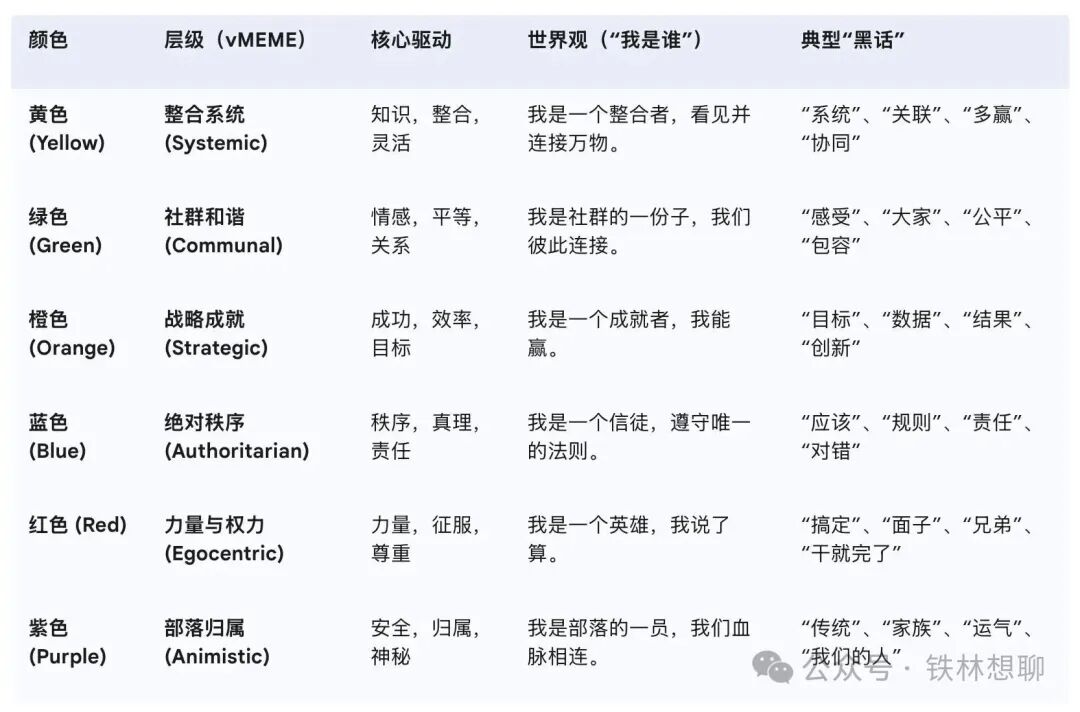人类的意识,就像一个不断向上盘旋的“螺旋阶梯”,每一层台阶,都代表着一种特定的“价值观系统”(或称为vMEME)。