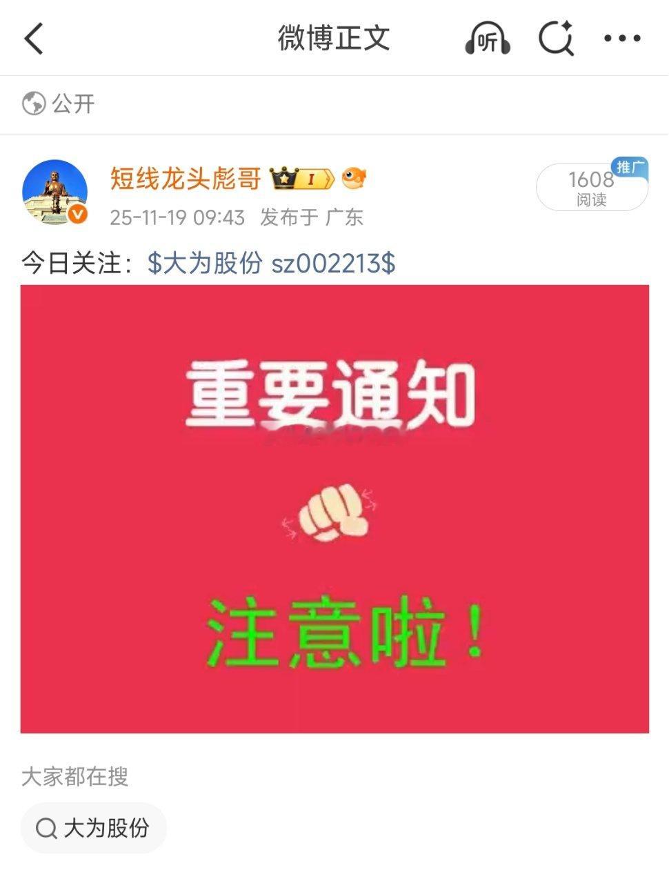 成功上板!找找节奏回来先! 评论区看看有多少上车了的老铁!$大为股份 sz002213$