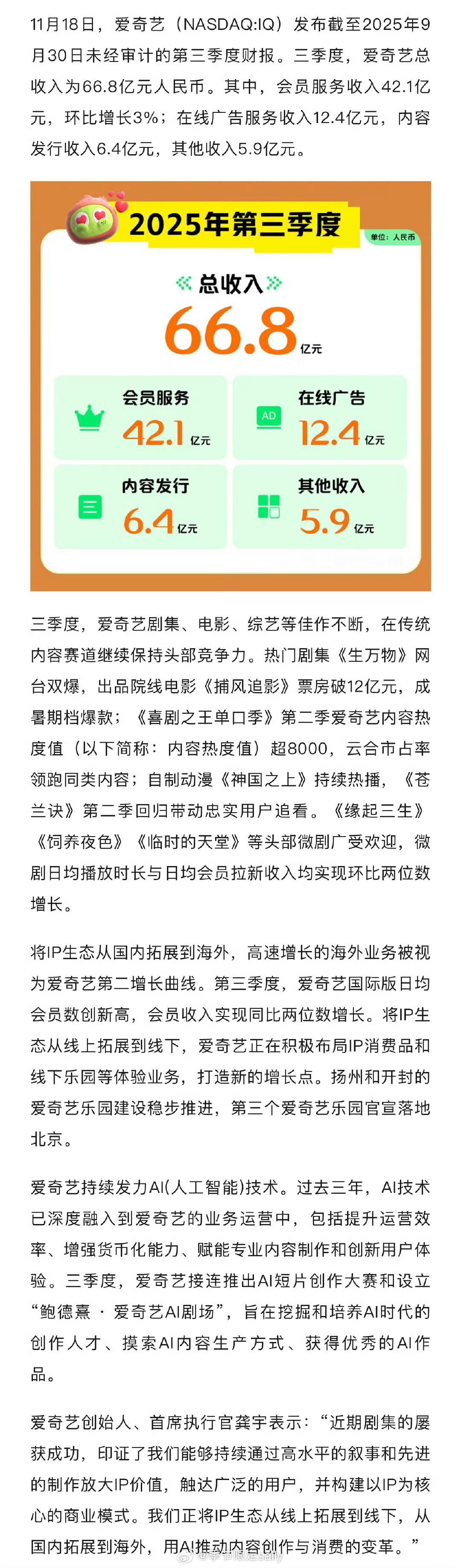 爱奇艺2025Q3财报来了