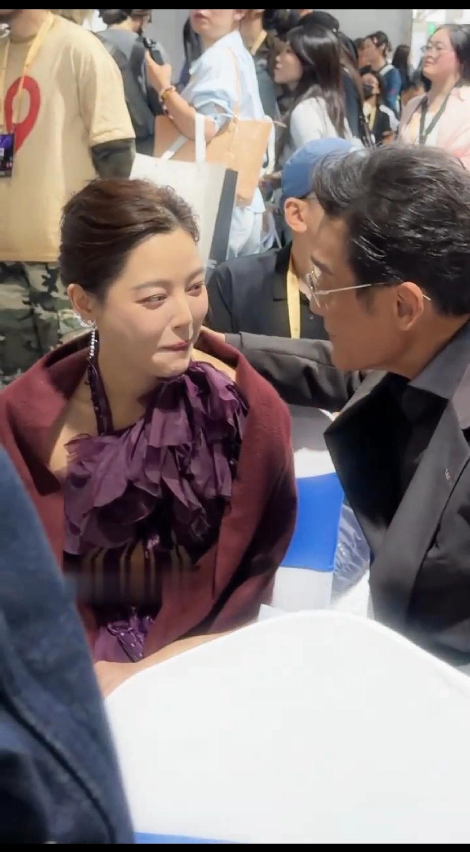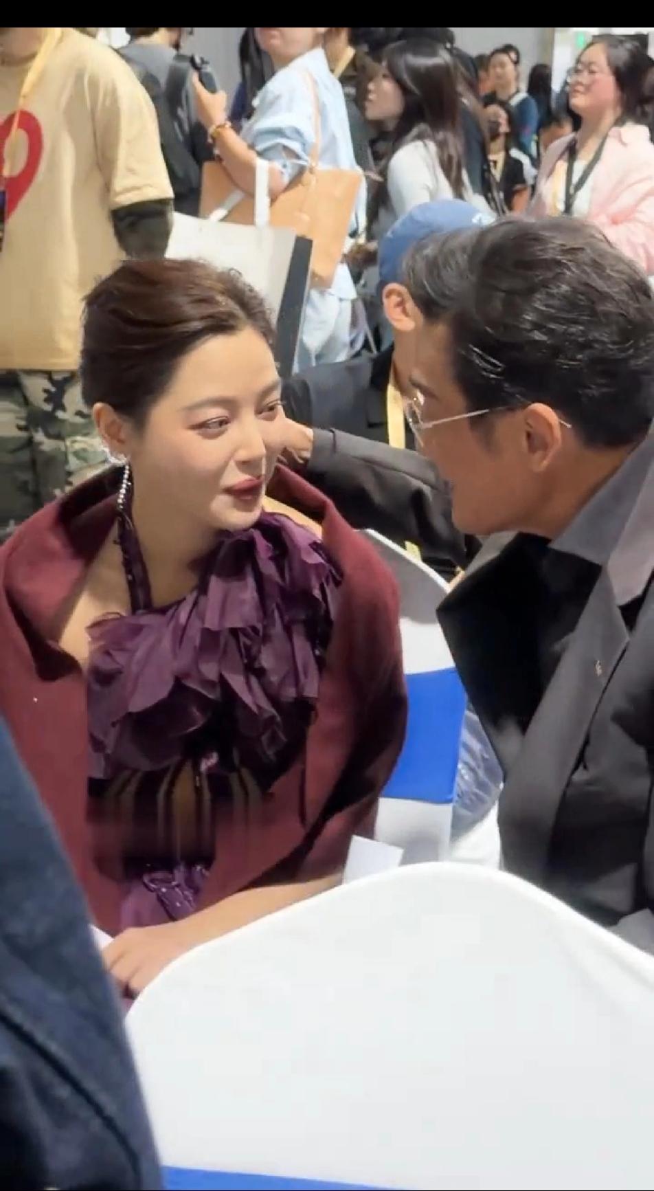 梁家辉是真绅士!和辛芷蕾聊天,不经意的一个帮忙拉披肩的动作让人见识到什么叫做刻在骨子里的绅士风度,梁家辉面对辛芷蕾像极了一个慈爱的老父亲,辛芷蕾聊的手舞足蹈,梁家辉认真的倾听,眼神专注,聊着聊着,梁叔把辛芷蕾的披肩往上拉了下,应该是觉得蕾子露着后脖颈会冷,动作自然又宠溺,像极了一个老父亲对女儿,还真的是,有一种冷,叫做老父亲觉得你会冷~~辛芷蕾