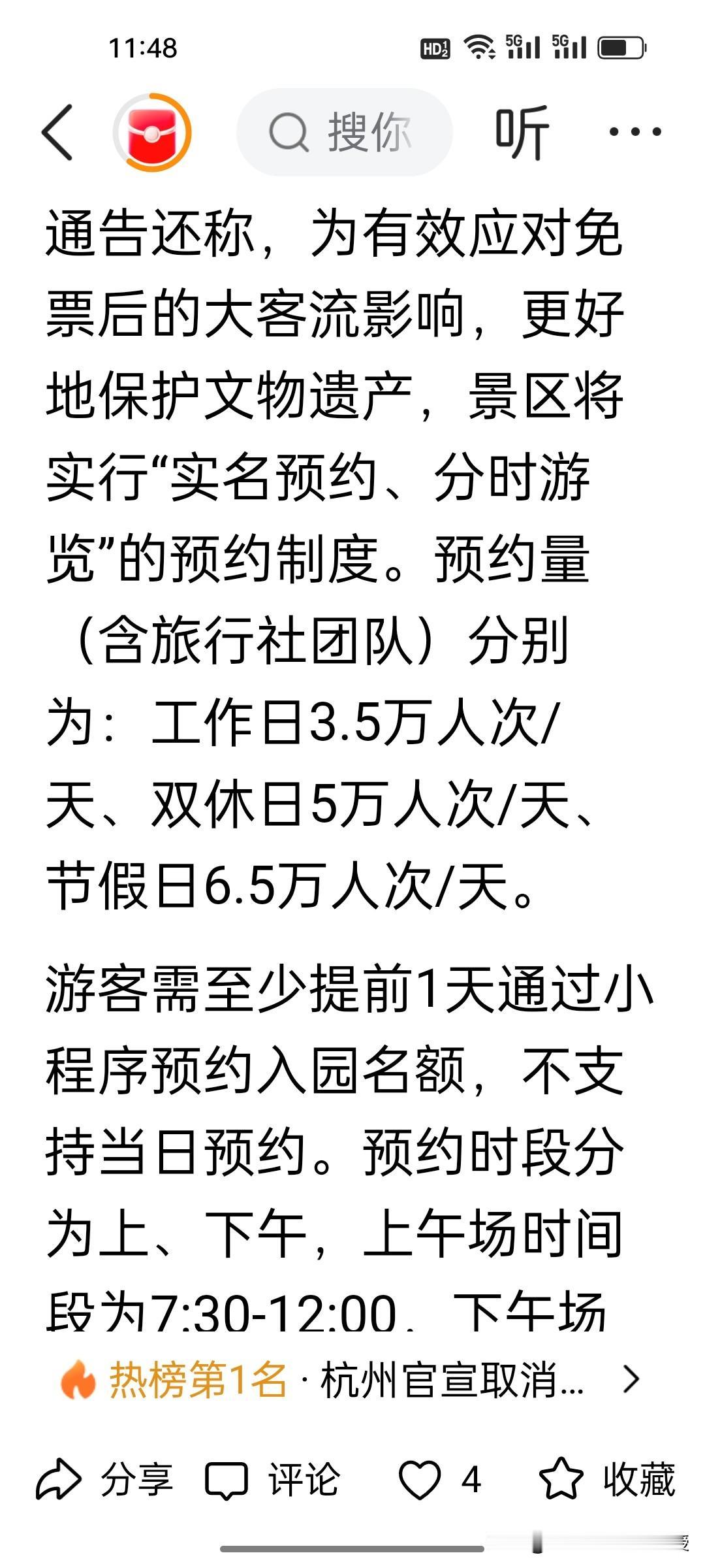 杭州灵隐寺12月1号开始免费开放,需要提前一天预约。杭州最著名的寺庙开始免费了,这个政策正好是在近期释永信被逮捕之后。 现在压力给到了全国各地其他的寺庙,峨眉山,九华山,普陀山,五台山会相继取消门票或降价吗?灵隐寺取消门票后,肯定会产生游客大幅增长的虹吸效应,这对全国各地其他的寺庙景点来说,肯定是利空。很多网友都对灵隐寺的免票政策拍手称快,认为寺庙本就是清净之地,不该商业化太重。