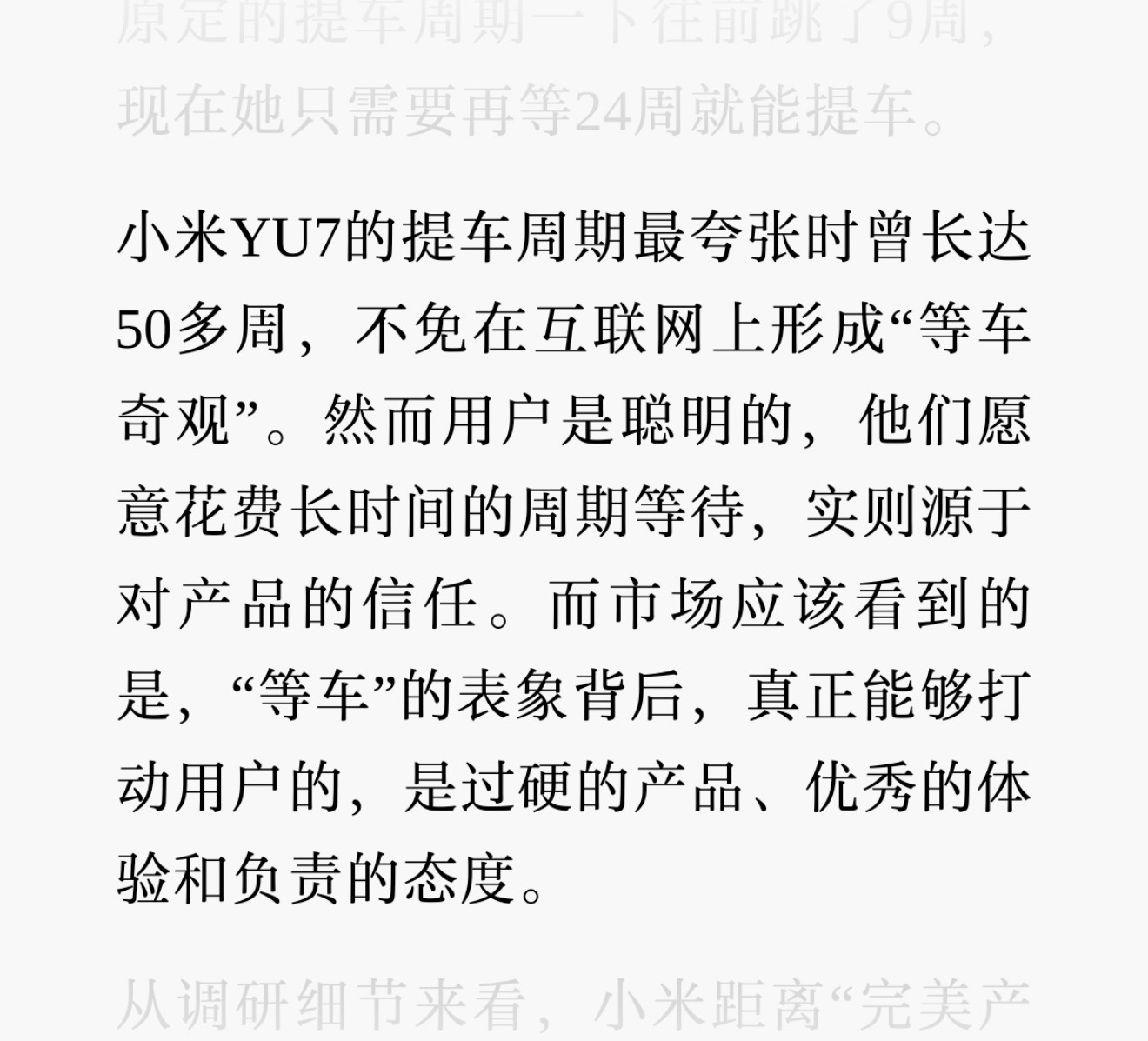 我自己就是小米YU7 Max的车主,这辆车打动我的地方很多,尤其是外观,确实很有吸引力,我自己买的珍珠白配色,配合红色卡钳,一眼就心动了而且上车后的这个天际屏给的视觉效果很好,还有萌宠,这个情绪价值给的很不错,另外驾驶体验也很好,像“零重力座椅”,还有他整个的静谧性都做的很优秀,现在下单YU7都还要等不少时间,确实火爆,但是很多人都愿意等,我觉得这就是小米给的产品力,包括情绪价值给到的吸引力,而且这个调研也有个很有意思的点,81.1%的YU7车主是首次购买电车,他们跳过油车直接选择高端电车,这说明啥,电车中,小米品牌的影响力很大的,可以说是小米扩大太多影响了,在新能源汽车市场真正打造出出圈的爆品。