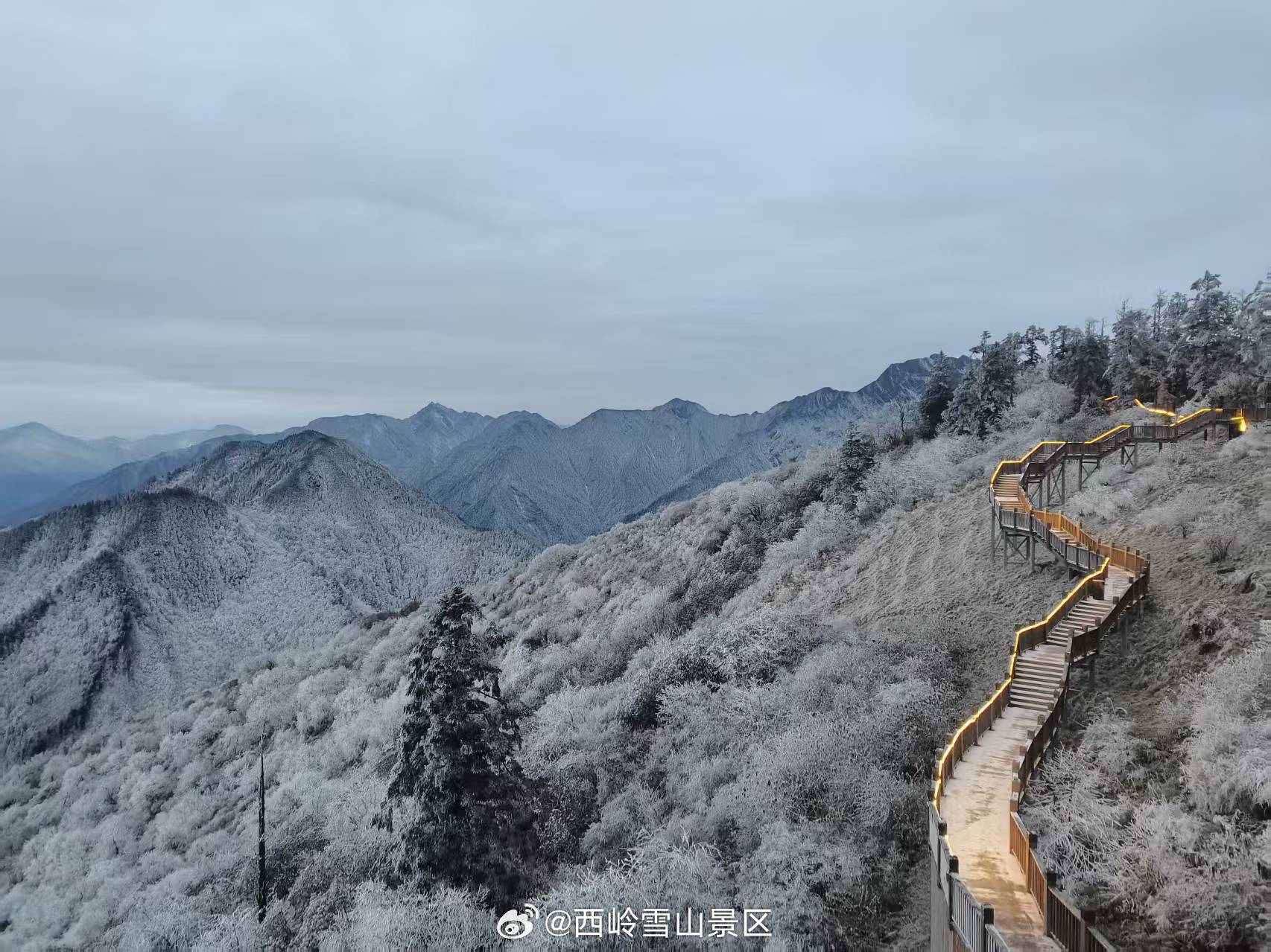 ❄️ 西岭雪山的白色浪漫,准时送达!☀️日月坪今晨绝美上新!夜雪过后,万里纯白,