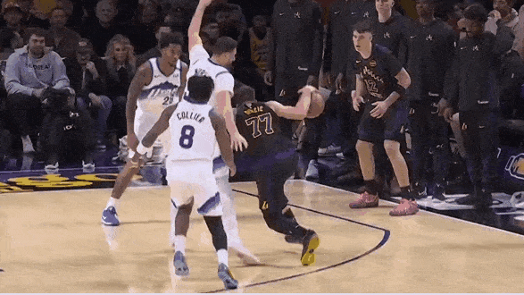 比赛第三节,东契奇信手一抛打进还有加罚,比出“andone”庆祝动作。