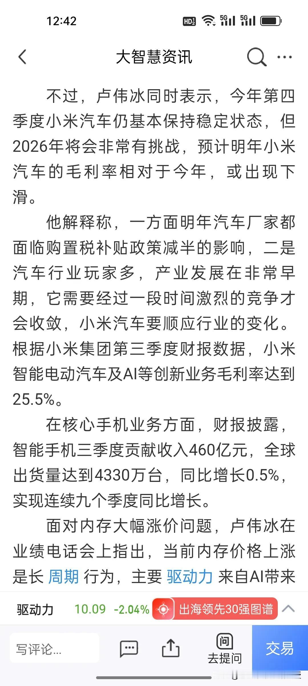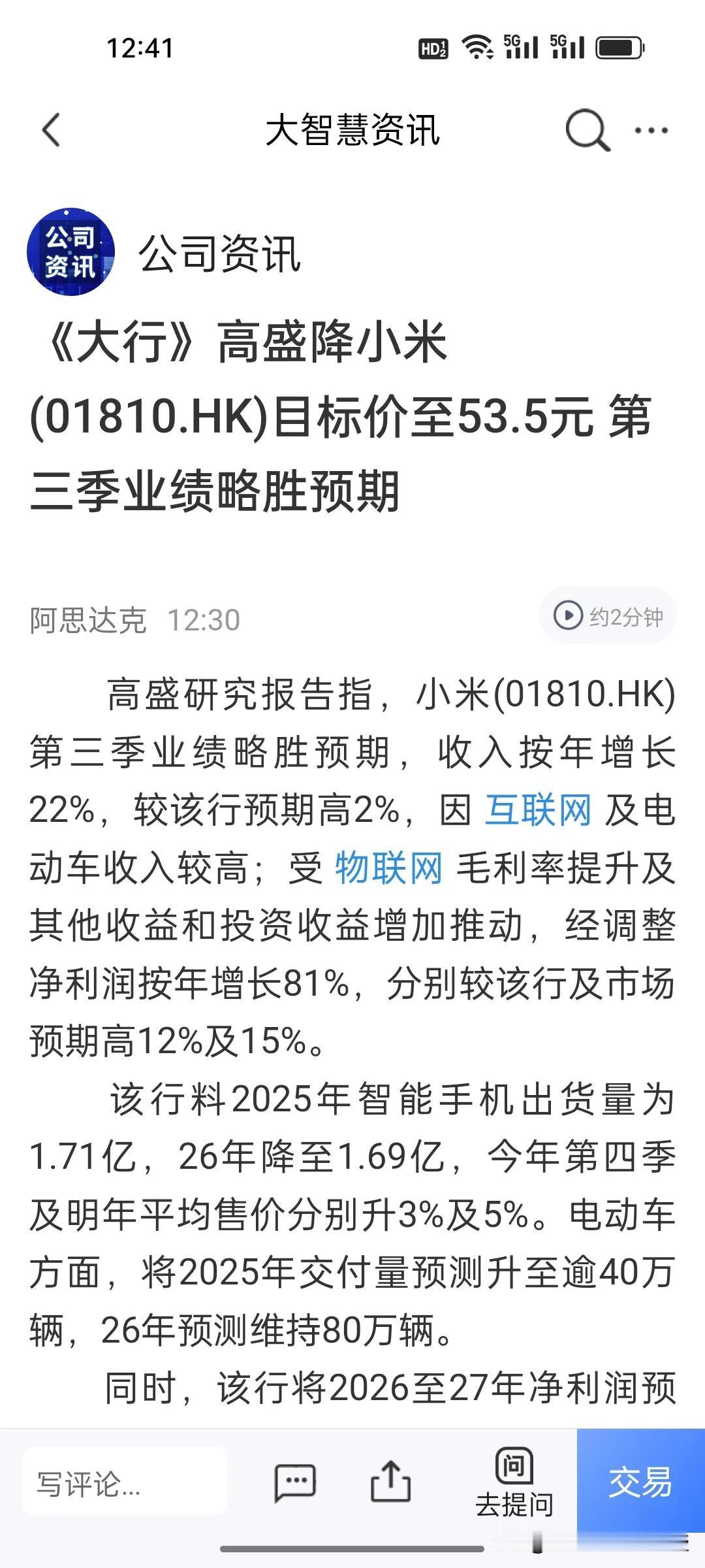 小米的48万中小股东们也要想不通啊!小米股价已经连跌五天,今天已经跌破40元了,昨天小米发了靓丽的第三季度财报,净利润122.6亿元,同比大增80.9%。这么优秀的业绩下,资本市场竟然不买账?高盛更是下调了小米目标价至53.5元。 看来近期的舆论以及小米法务正在应对的“挖孔机盖”的官司还是对小米产生了较大的影响,雷军身价自今年2月峰值4400亿元至今,身价缩水了1100亿,这得卖多少车和手机啊!雷军最近也确实有点急,连发微博澄清颜值和安全可以“并列第一”,并不矛盾。