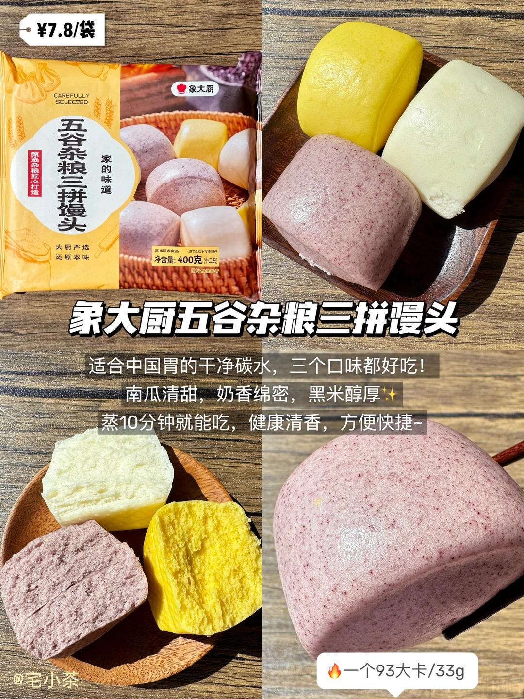 ✅象大厨五谷杂粮三拼馒头 ¥7.8/袋