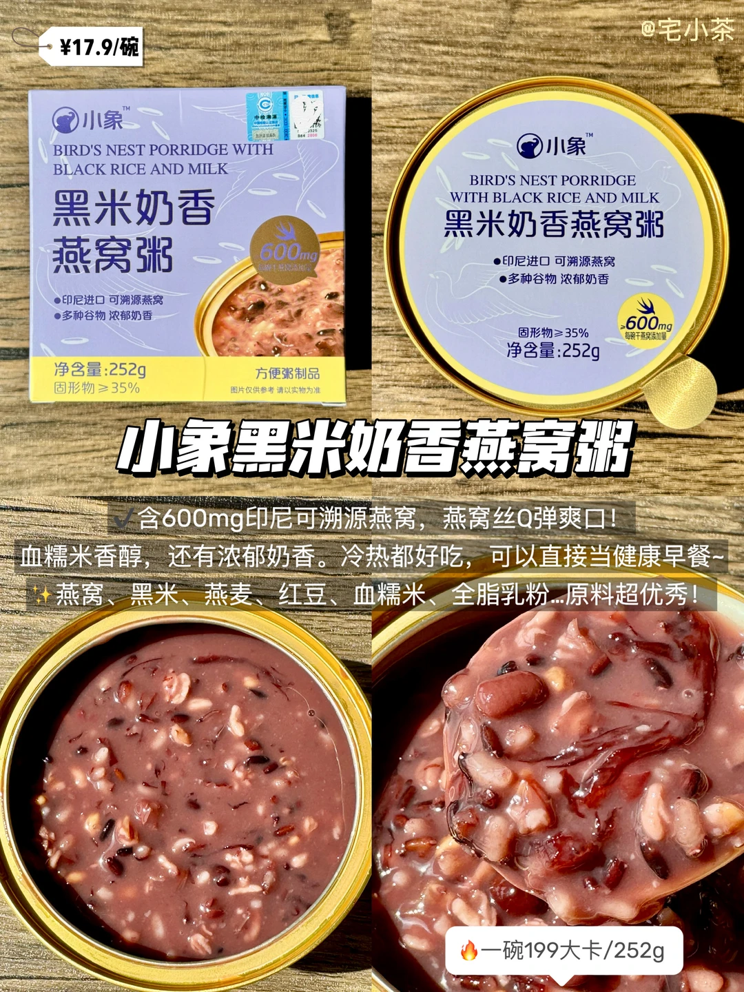 ✅小象黑米奶香燕窝粥 ¥17.9/碗