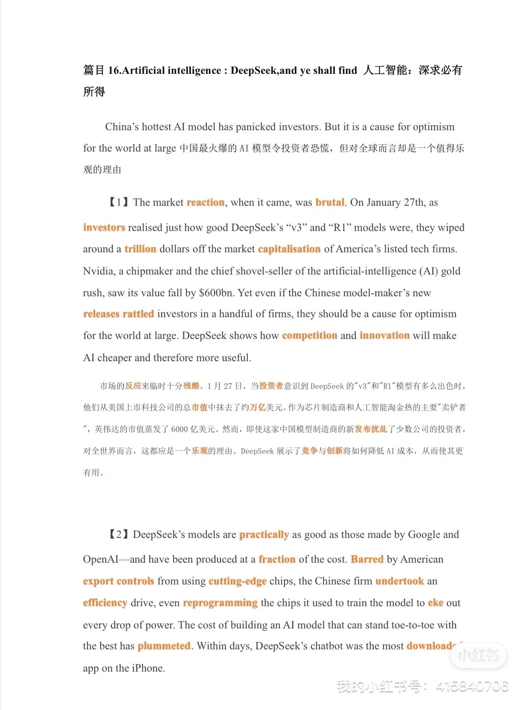 1.经济学人对"deepseek"的评论外刊,(ai人工智能会成为今年作文或阅读的考察重点)