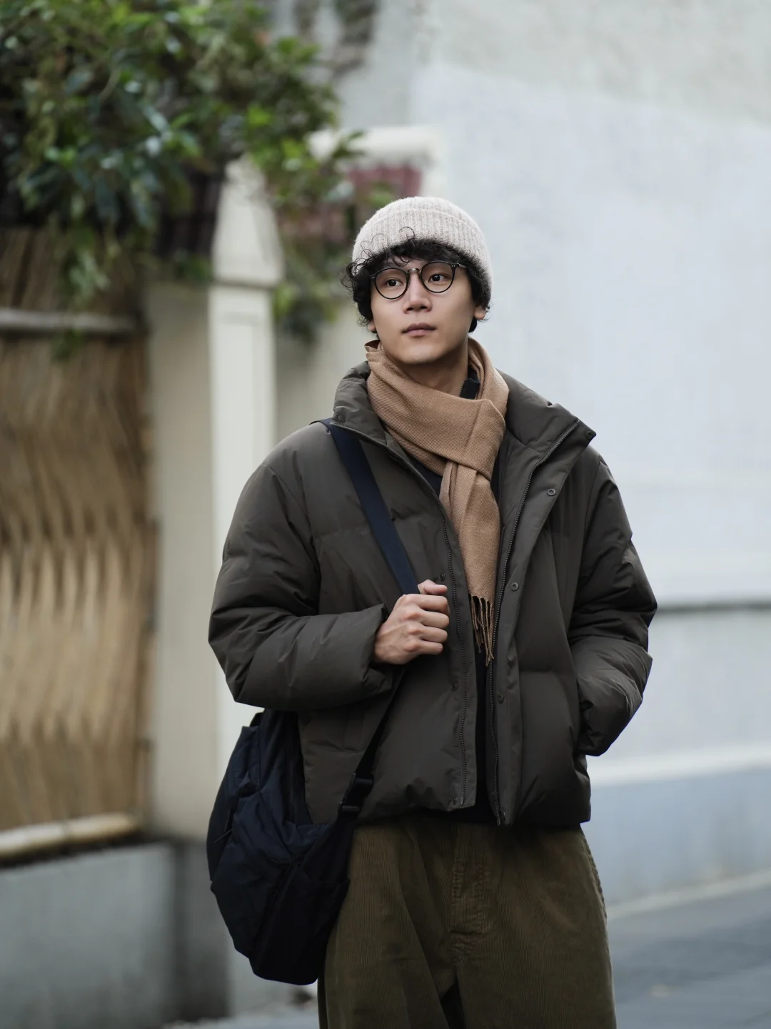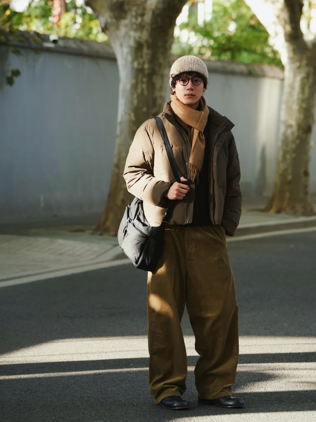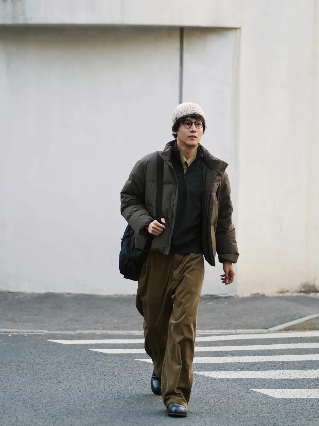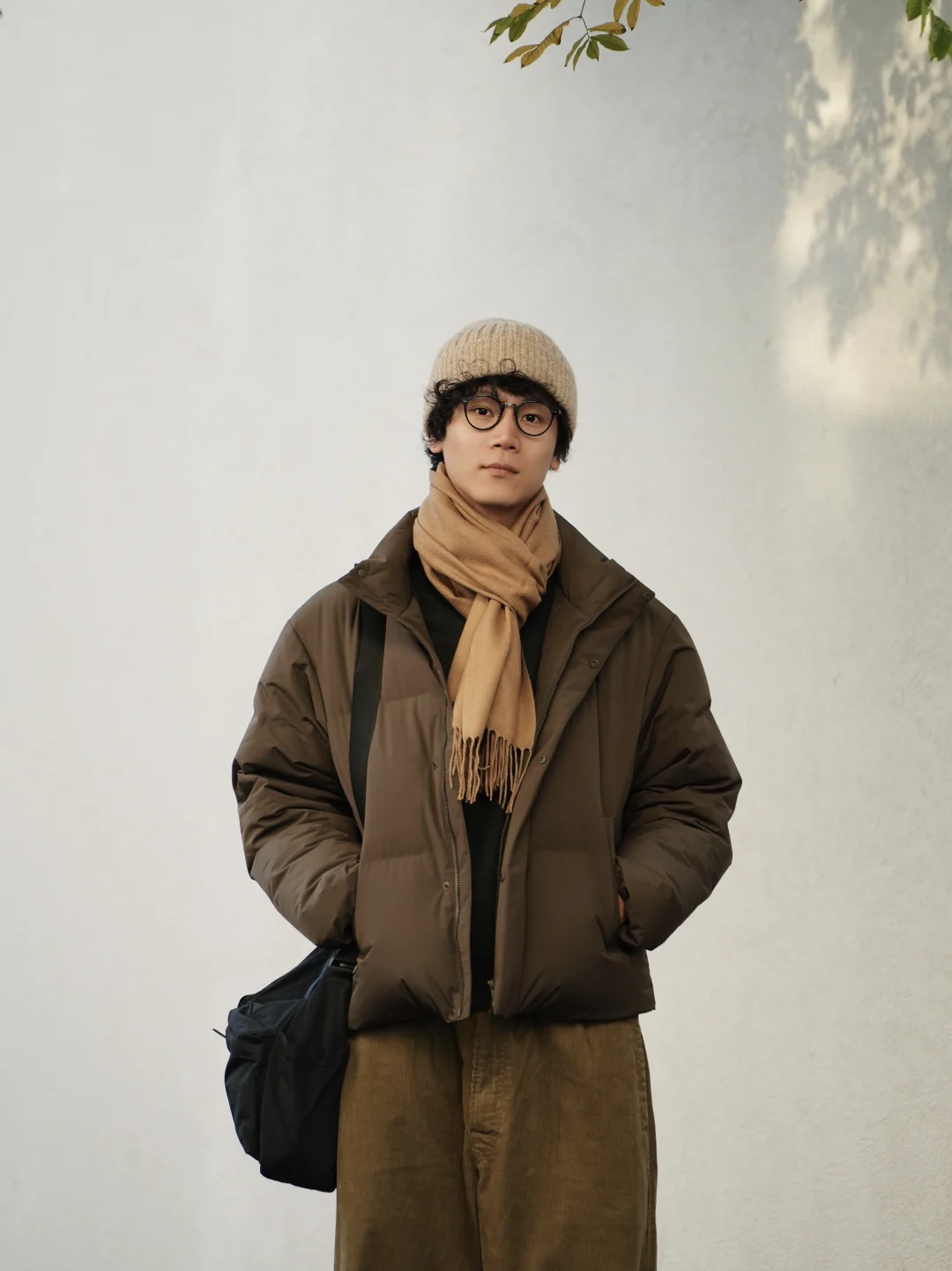 look2选择了一件棕色的无缝羽绒茄克(货号:478578)