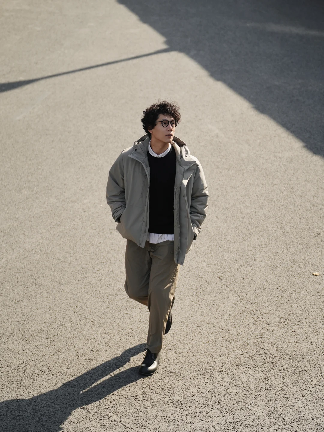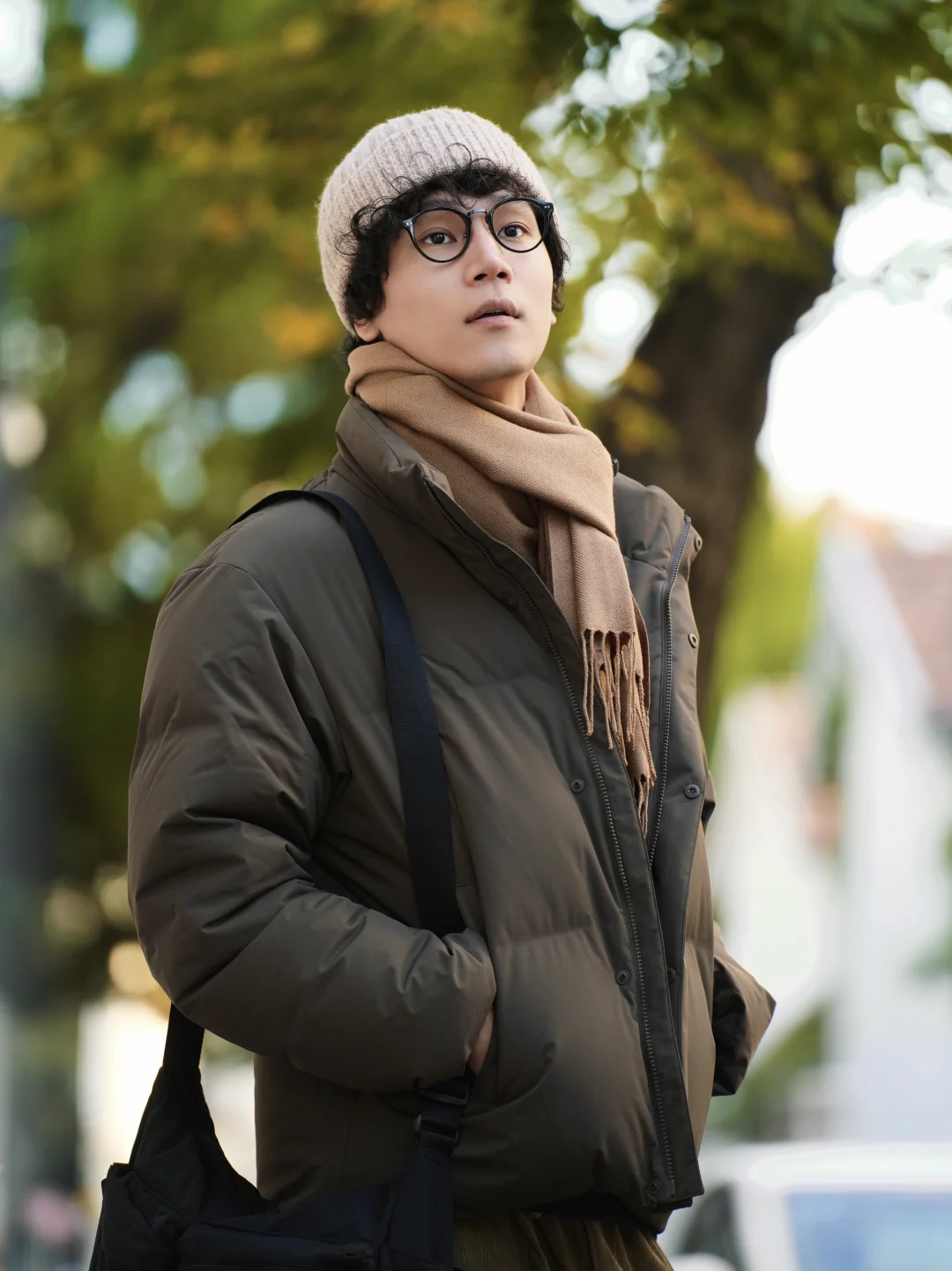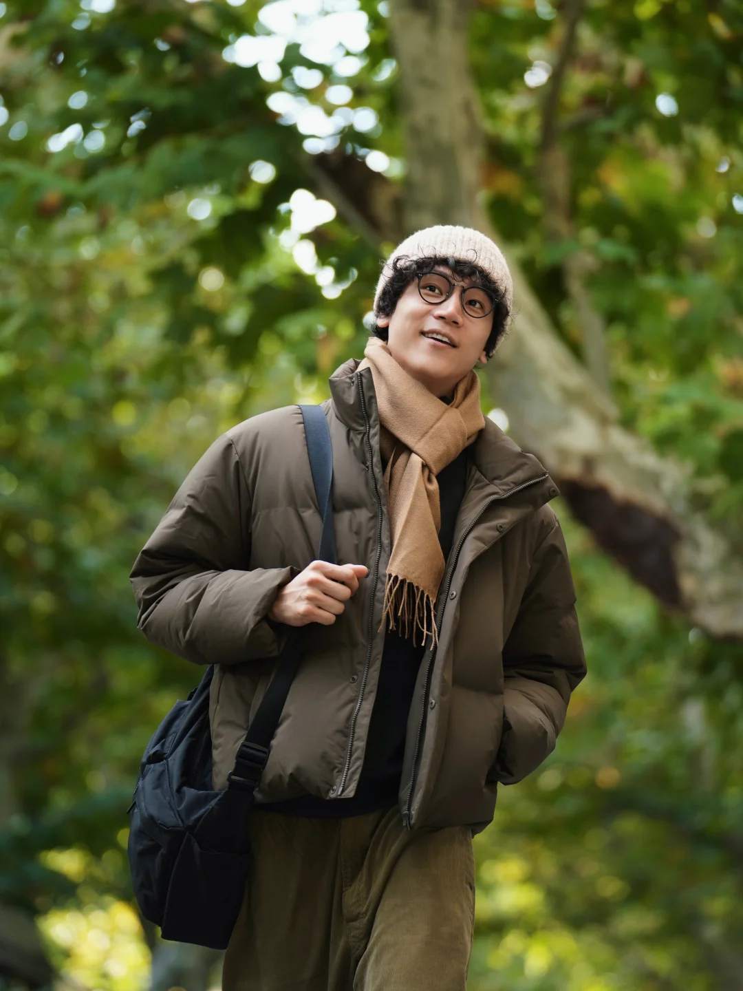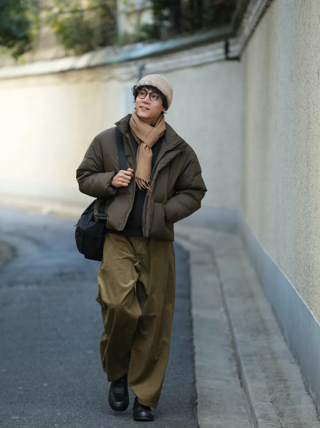 look2选择了一件棕色的无缝羽绒茄克(货号:478578)