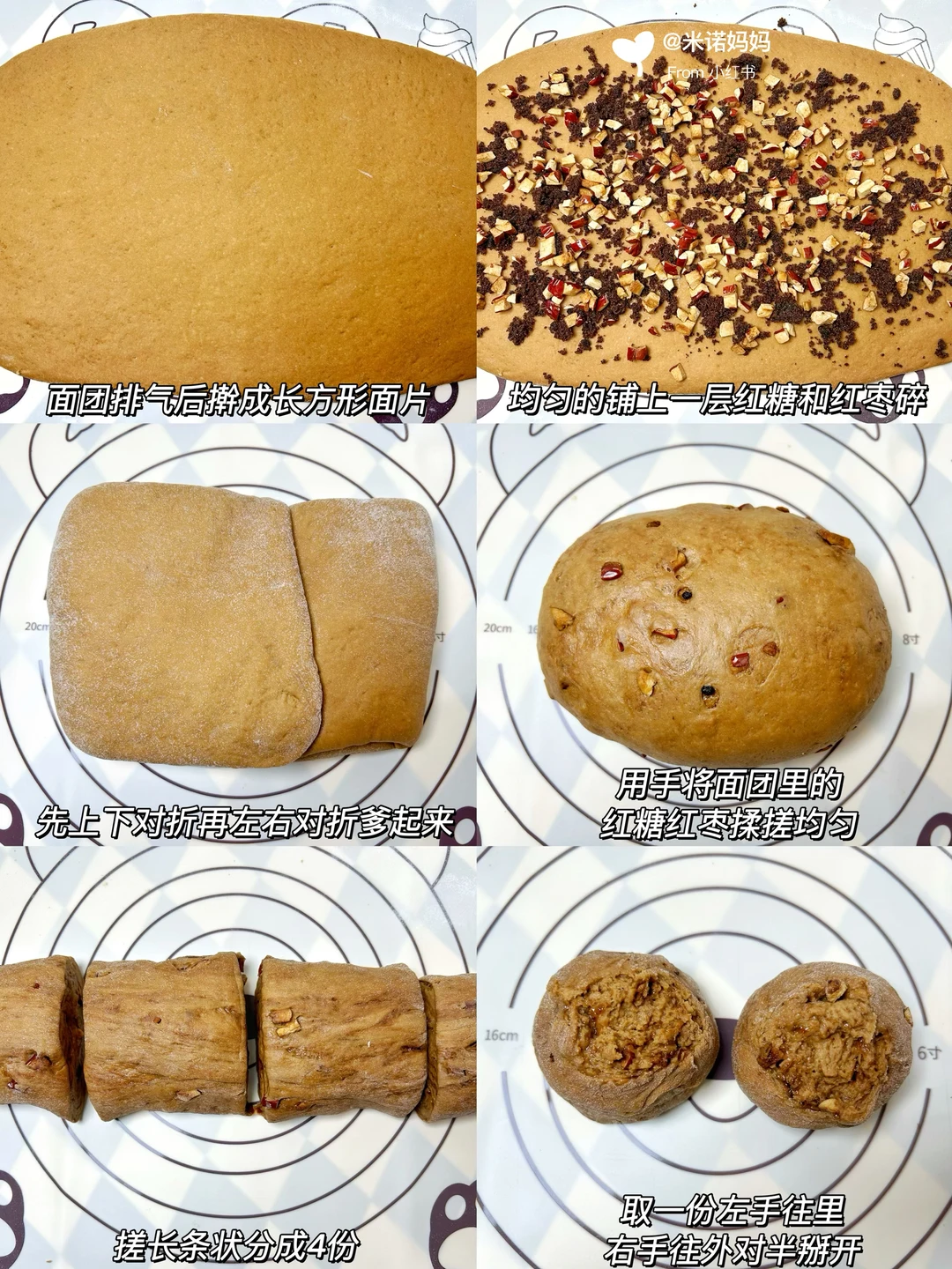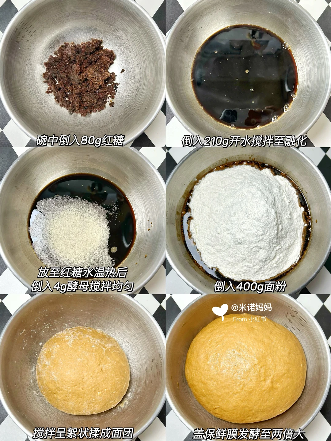 面粉400g | 红糖80g | 水210g | 酵母4g | 红枣适量