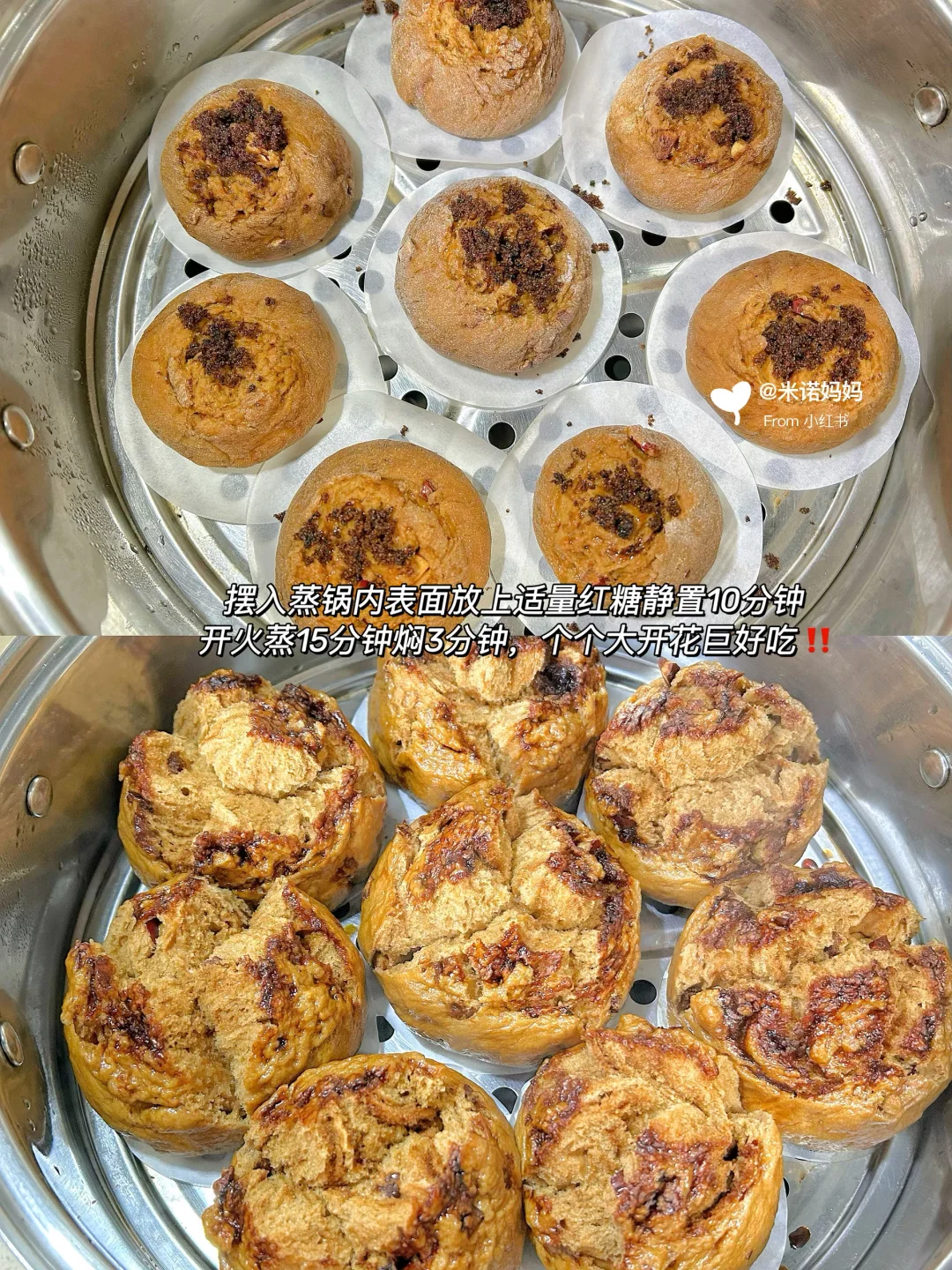 巨好吃的红糖开花馒头来啦!蓬松暄软,个个大开花,可以一层层撕着吃,比面包还好吃,每一口都有浓郁的枣香味,大人孩子都吃不够,都去码住[拥抱R]