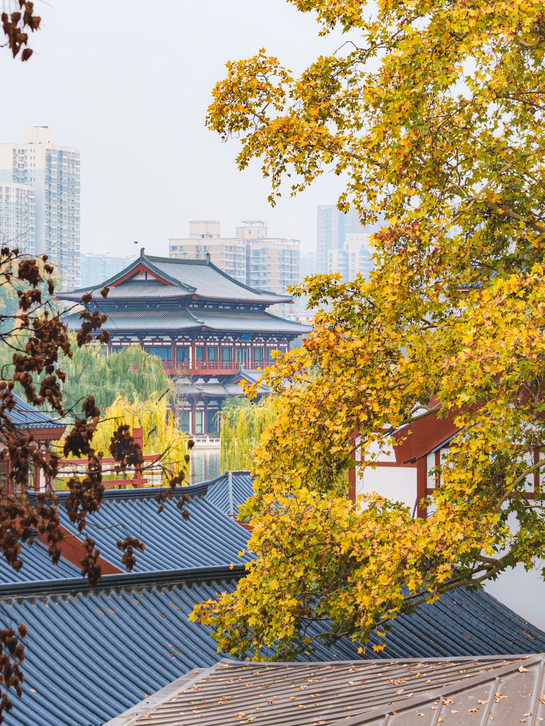 3️⃣唐大慈恩寺遗址公园遗址公园里有一片银杏林(但已经逐渐在落了),还能去找如来佛和大雁塔的同框机位📷
