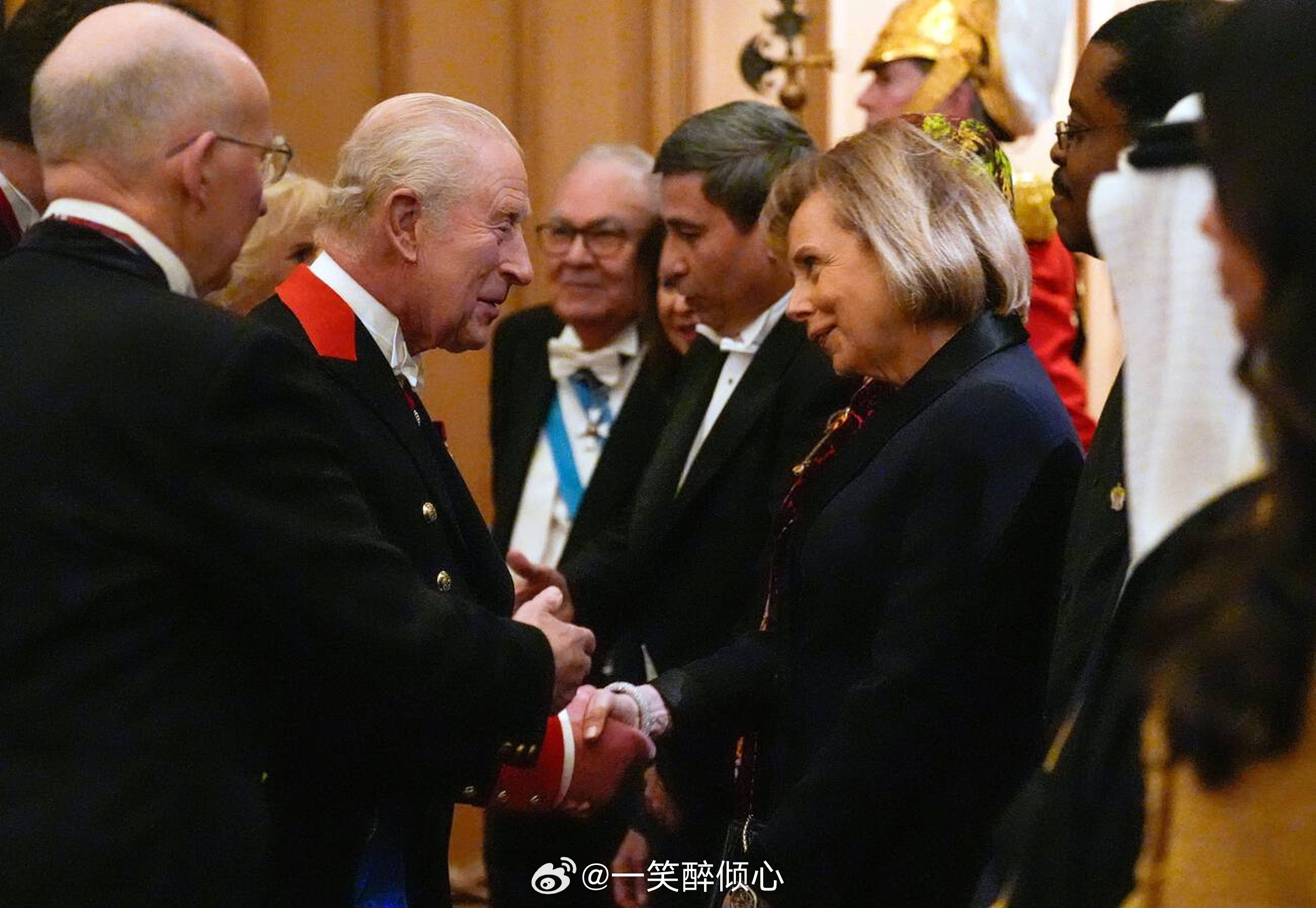 2025年11月18日,查尔斯三世、卡米拉王后和威廉王储在温莎城堡出席一年一度外交招待会🇬🇧本次活动是自从2001年以来首次在温莎城堡举行年度外交招待会,以往都是在白金汉宫举行。