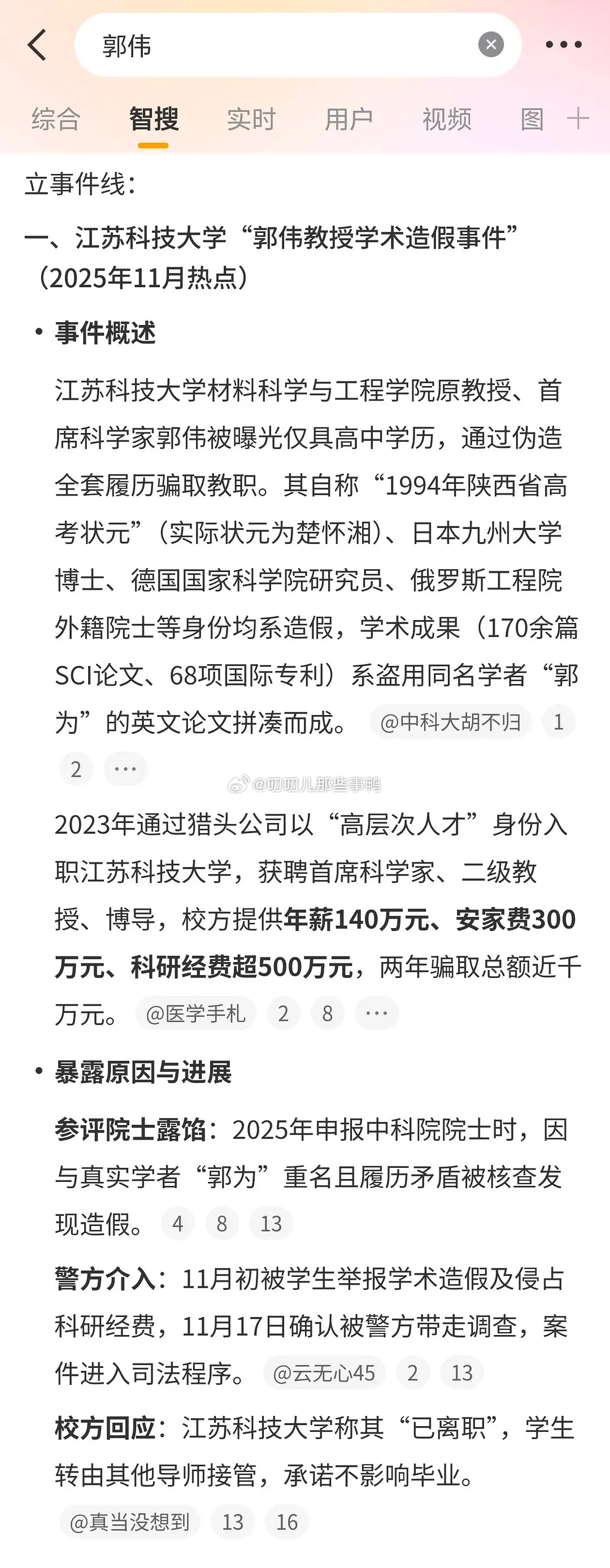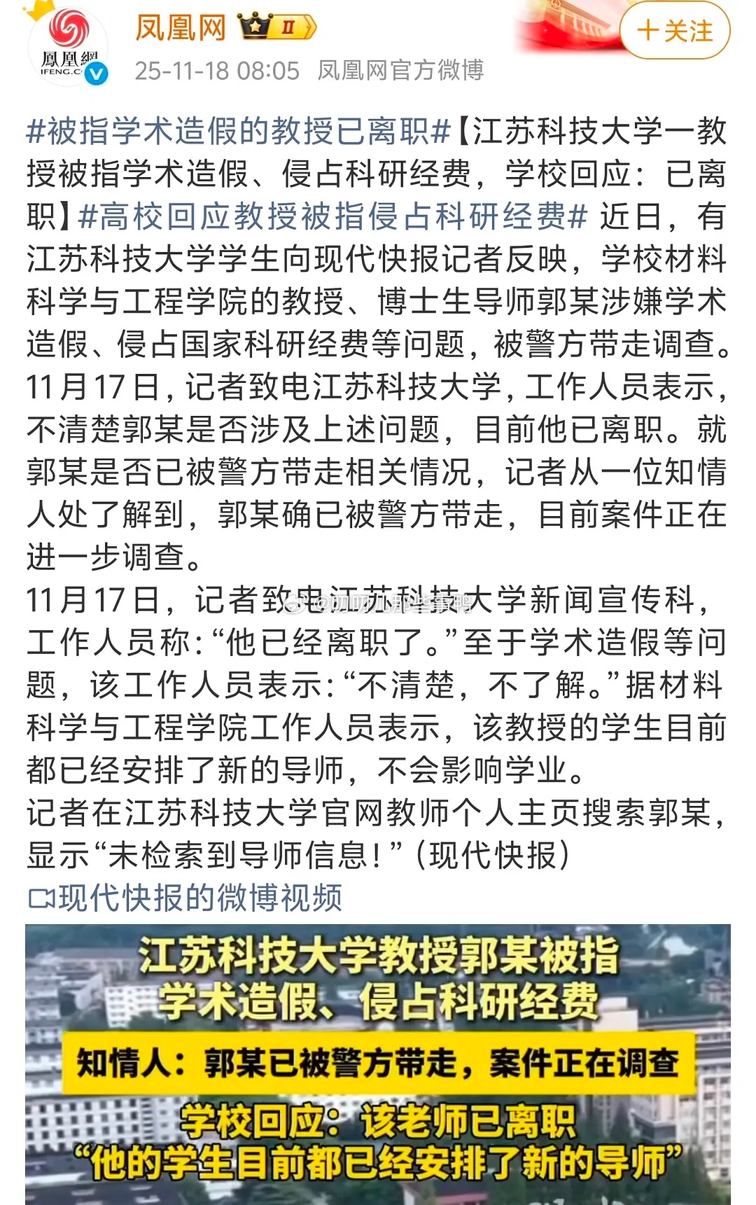 江苏科技大学首席科学家“郭伟”17日被证实已经警方带走,锒铛入狱,一起现实版的科