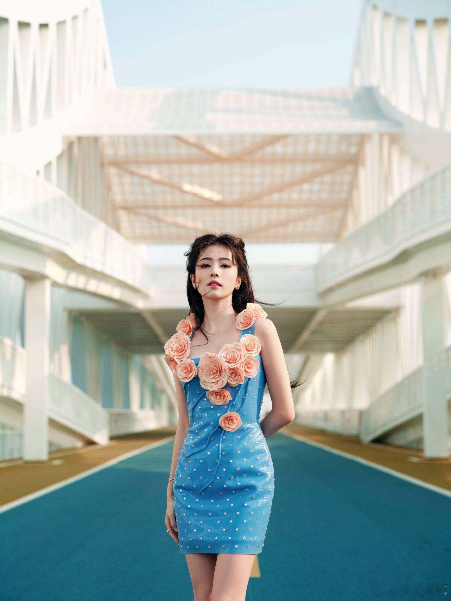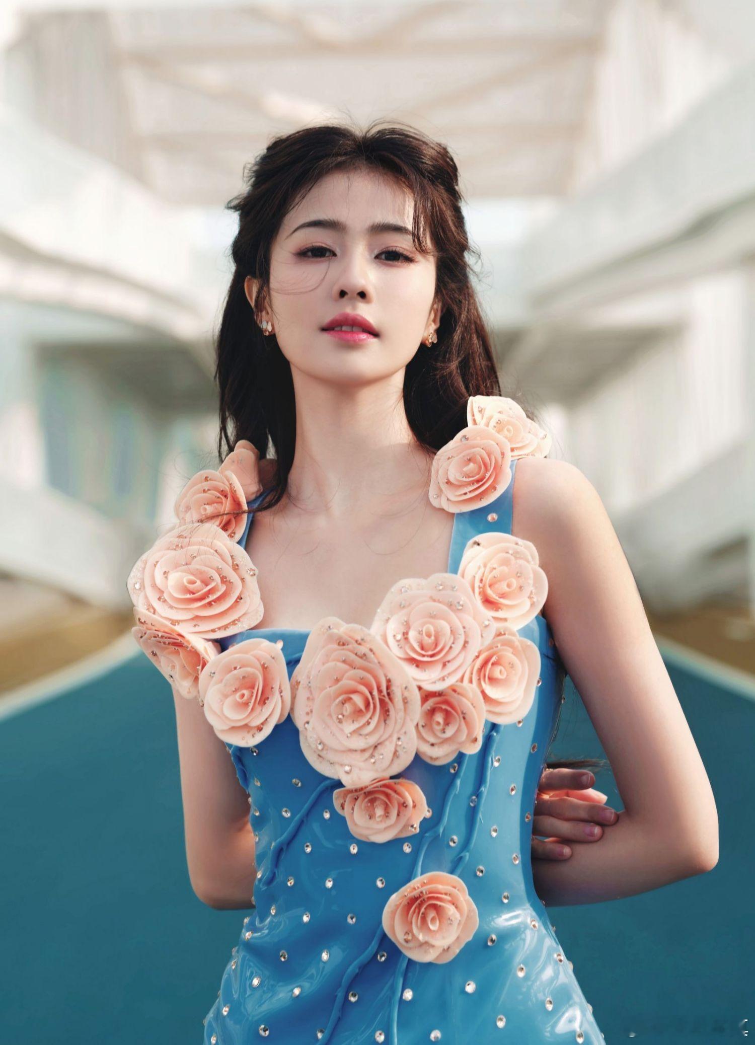 卢昱晓淡紫纱裙绽着繁花,抹胸设计衬出优雅肩线💜