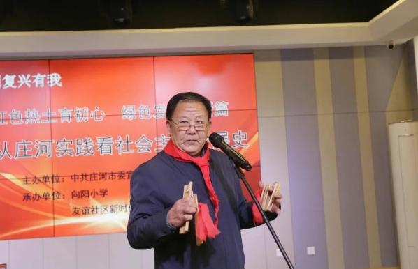 讲座中,顾明以自编自演的快板《庄河新貌》开篇,朗朗上口的台词瞬间点燃会场氛围。随后,他围绕社会主义百年征程中的庄河印记,从革命时期的英雄壮举、建设年代的实干足迹,到改革开放的发展突破、新时代的绿色转型,用翔实史料与鲜活案例,生动诠释“社会主义是脚踏实地的实践”这一道理,让师生深刻感受红色基因力量与制度优越性。