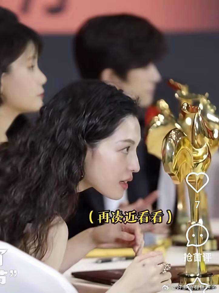 金鸡奖颁奖礼上,最抢眼的不是明星争C位,也不是影帝背后的男人袁弘,而是那块亮闪闪的奖杯!别人捧奖杯都像供祖宗,生怕磕着碰着,可宋佳和钟楚曦却把它玩出了新花样,直接当镜子补妆! 最佳女主角和最佳女配角得主,一个对着奖杯补口红,一个拿它检查眼线,那认真劲儿仿佛在说:"这奖杯不光能拿,还能照人!"得亏奖杯够亮堂,不然这"临时化妆镜"还真没法用。这届明星太会省事儿了! 不过话说回来,能一边领奖一边补妆,这心态也是没谁了。金鸡奖奖杯,怕是最实用的"奖杯"了!
