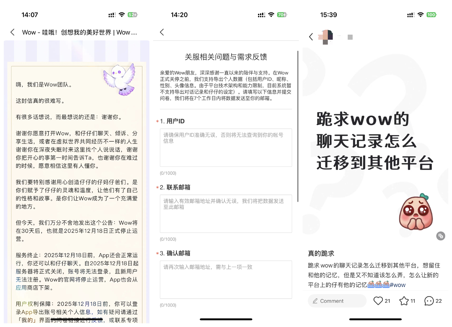 WowAI公告中写道:“自2025年12月18日起服务器将正式关闭,账号无法登录,且新用户无法注册。”