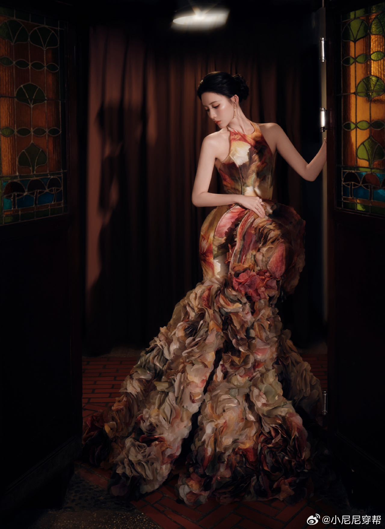 这哪是品牌活动分明是艺术展!丝缎长裙裹着窈窕曲线,金色流苏在脚踝摇曳生姿,印尼的夜空中她是最亮的那颗复古卫星!