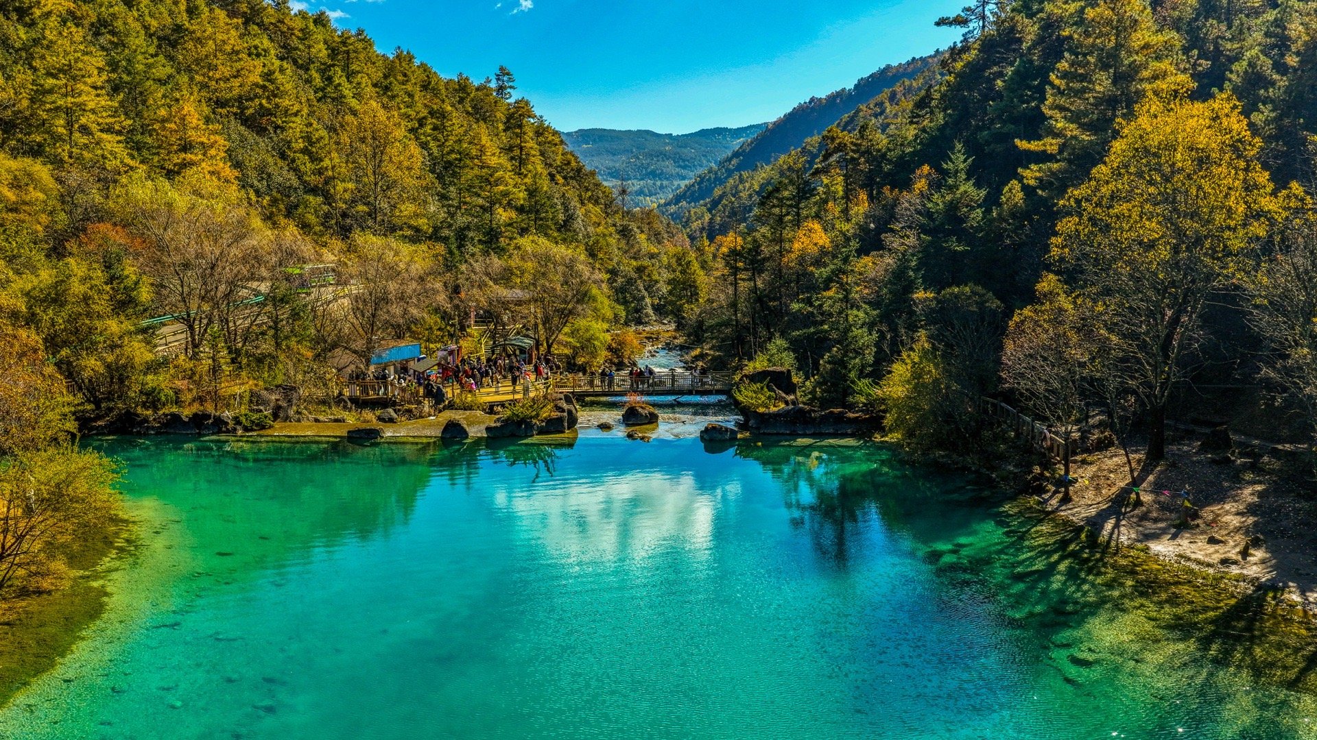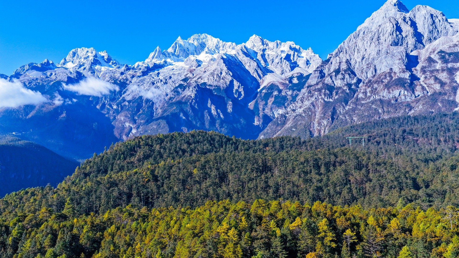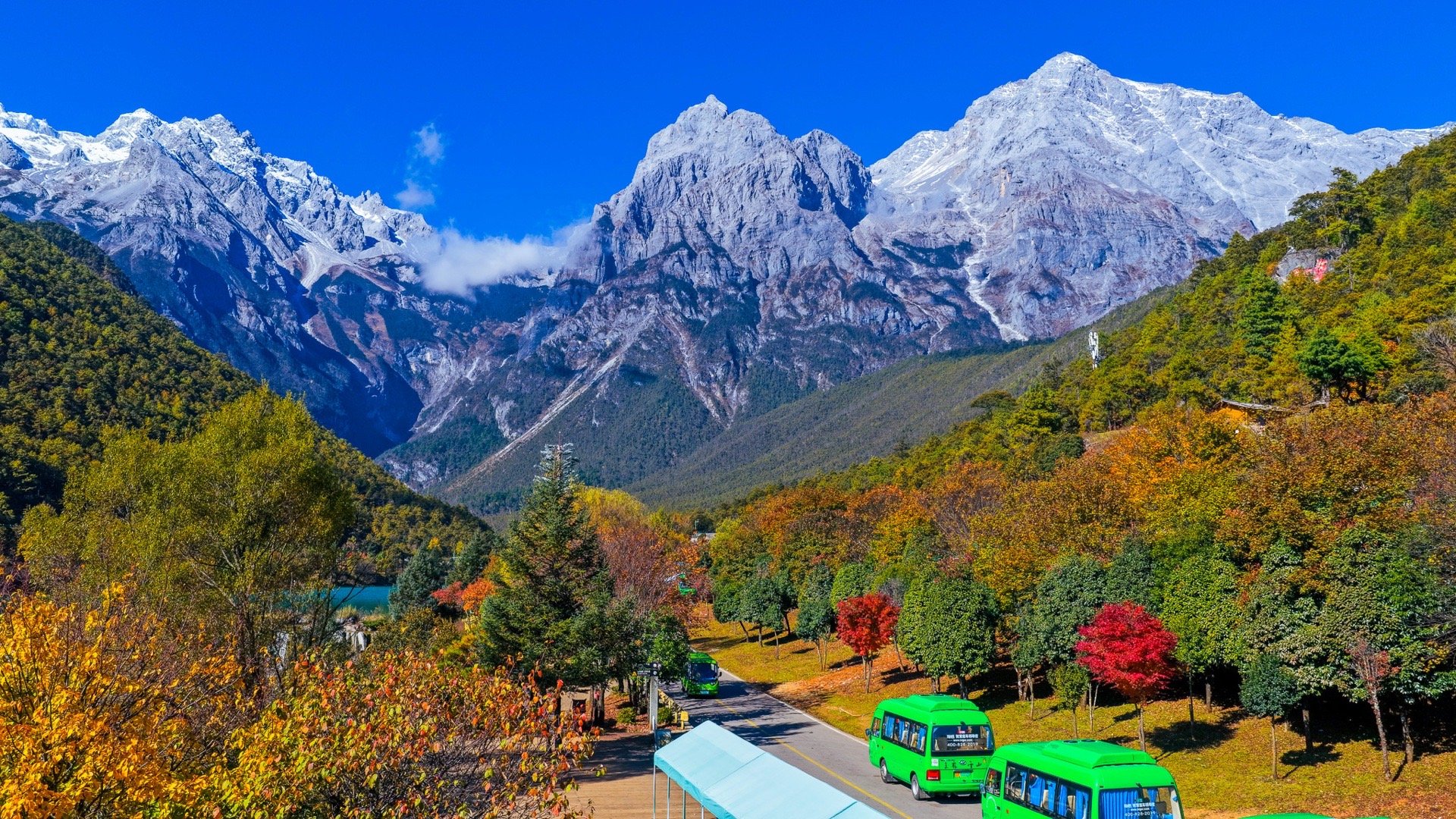 初冬时节,云南丽江玉龙雪山景区圣洁的雪山与多彩的植被交相辉映。云杉坪的高山草甸已染上金黄,与玉龙雪山的皑皑白雪共同构成了一幅色彩浓郁的油画。被誉为“小九寨”的蓝月谷在纯净的蓝天映衬下,迎来新一轮的“颜值”巅峰。
