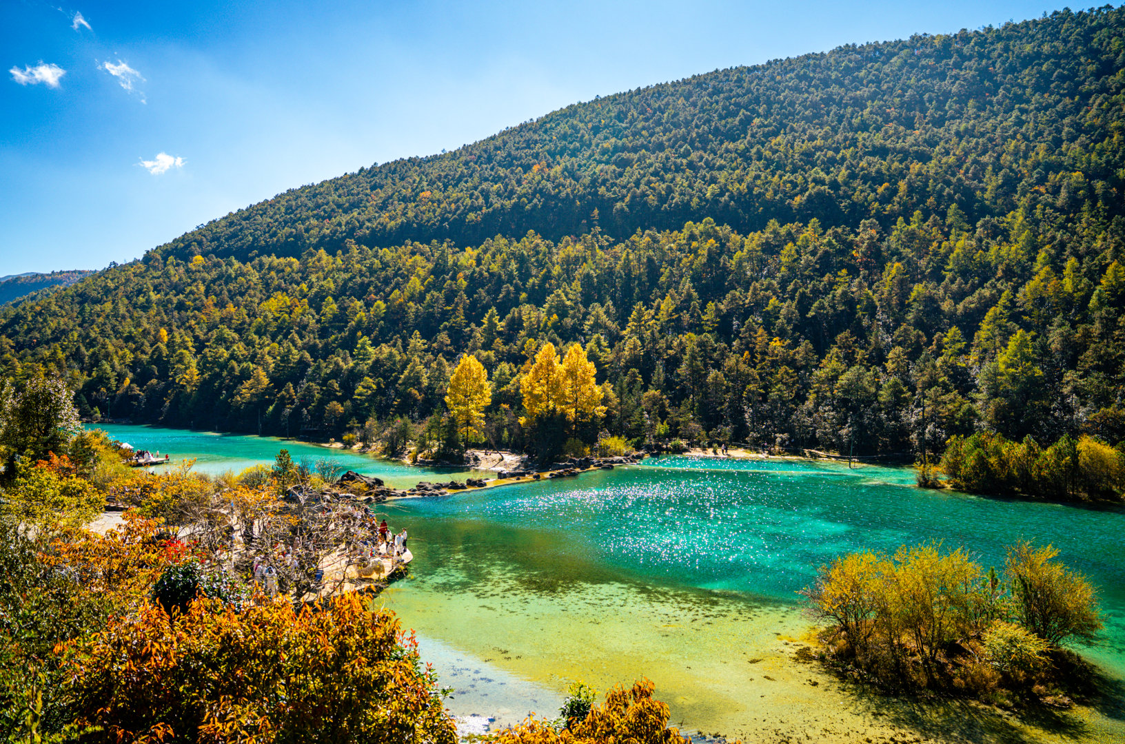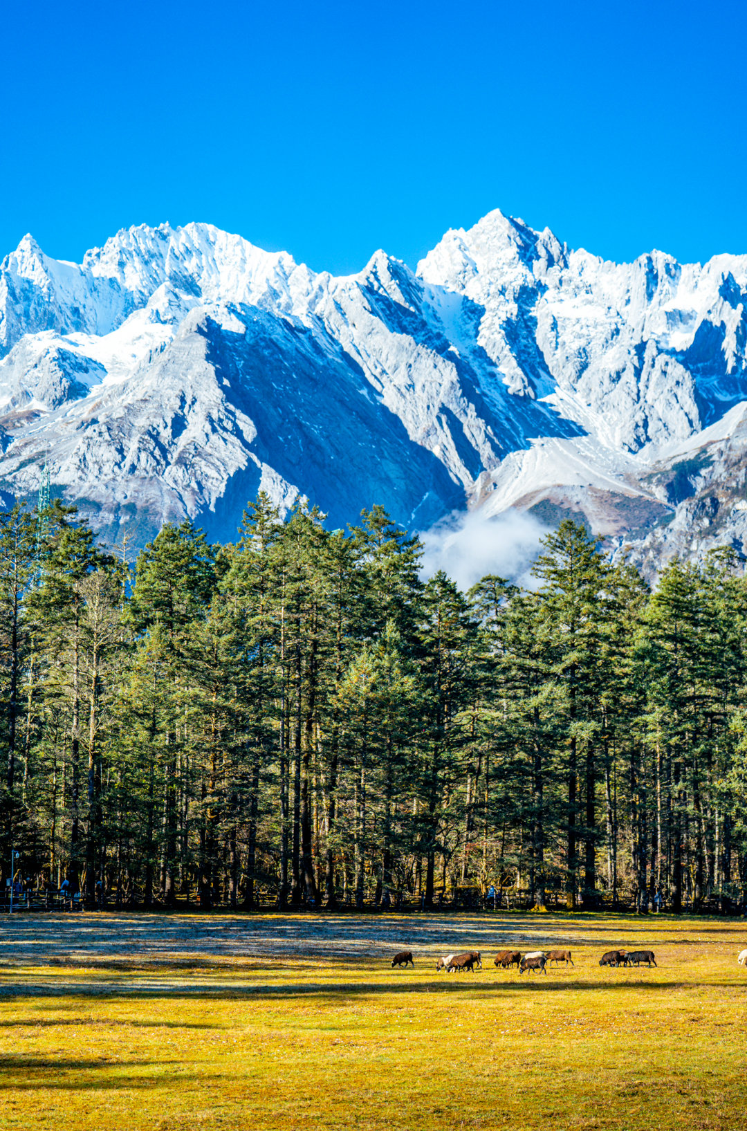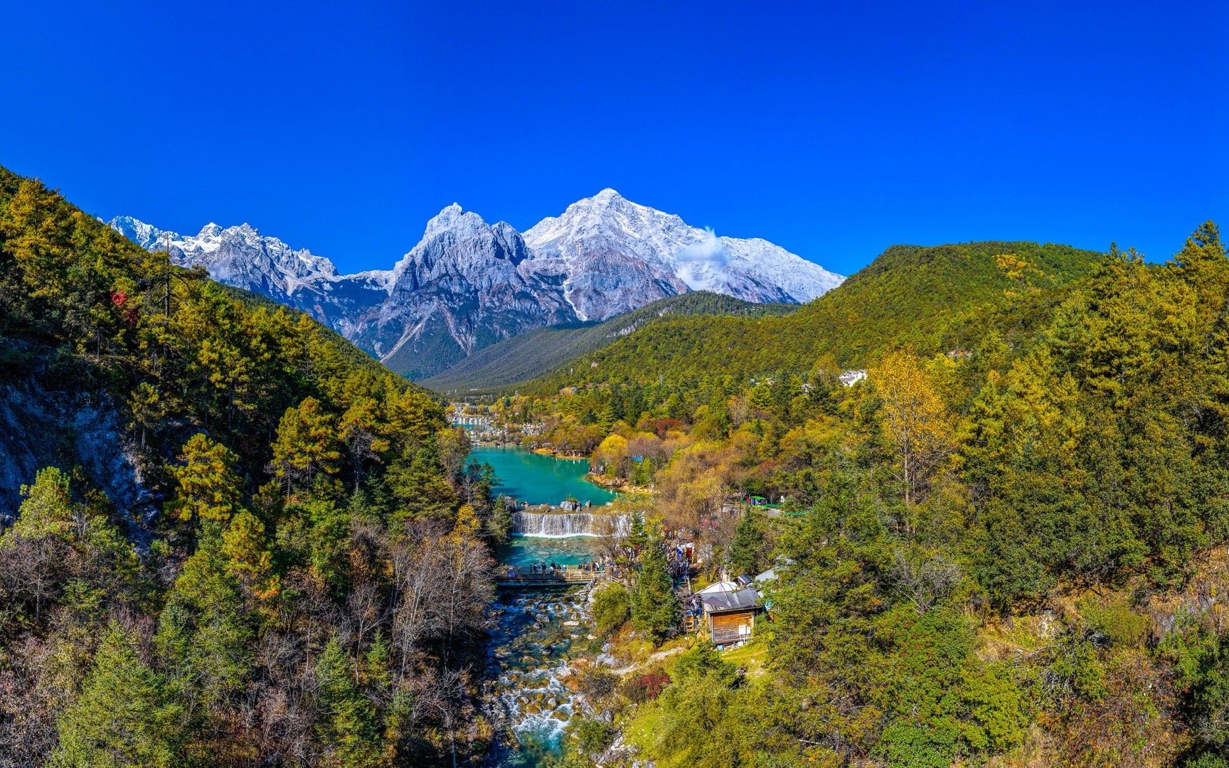 初冬时节,云南丽江玉龙雪山景区圣洁的雪山与多彩的植被交相辉映。云杉坪的高山草甸已染上金黄,与玉龙雪山的皑皑白雪共同构成了一幅色彩浓郁的油画。被誉为“小九寨”的蓝月谷在纯净的蓝天映衬下,迎来新一轮的“颜值”巅峰。