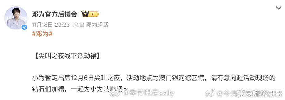 爱奇艺尖叫之夜目前确认出席的明星:邓为、张凌赫、白鹿、侯明昊、曾舜晞、刘雨昕、刘