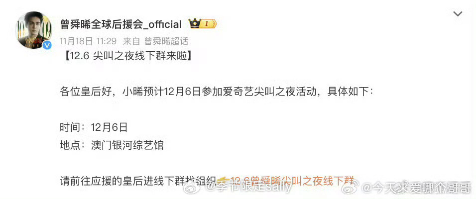 张凌赫要去爱奇艺尖叫之夜啦!燥候红毯
