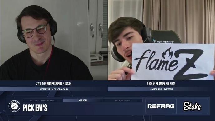 在最新一期的《HLTVConfirmed》节目中,flameZ展示了他原本为布达佩斯Major精心设计的个人签名贴纸。然而遗憾的是,该方案未被V社采纳,赛事贴纸将继续沿用此前在奥斯汀Major中被许多玩家吐槽“设计粗糙”的签名样式。