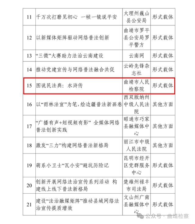 近日,中共云南省委网信办通过层层把关筛选,经初评、复评、终评,评选出2025年云南省网络法治宣传优秀案例40个,并从中优中选优确定10个云南省网络法治宣传精品案例。