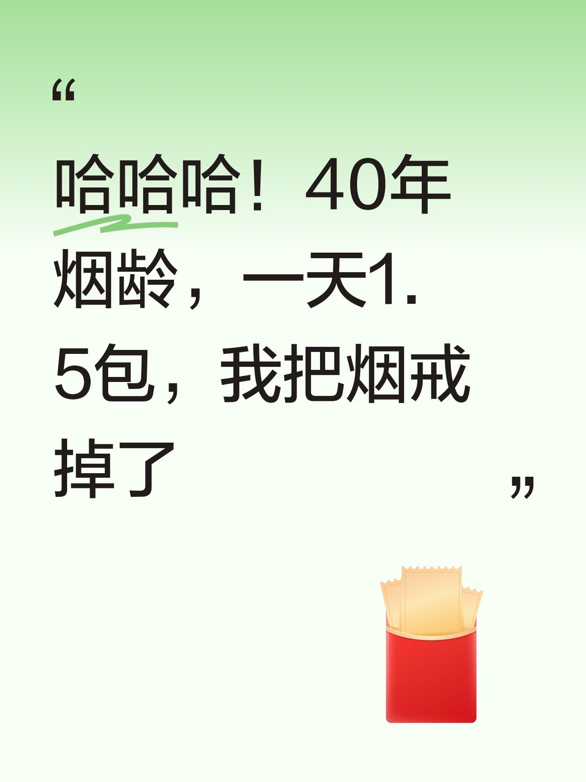 哈哈哈,真没想到我竟然把烟戒掉了,有着40年烟龄,曾经一天要抽1.5包呢。