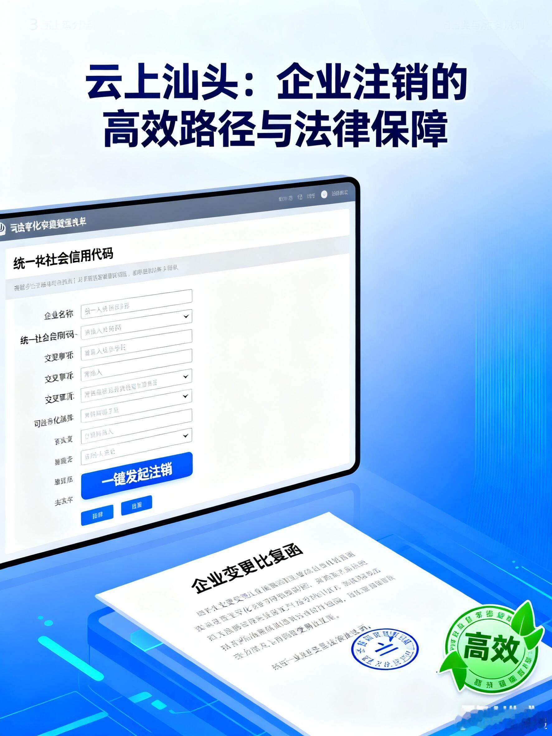 云上汕头:企业注销的高效路径与法律保障企业注销是公司生命周期的终结阶段,它标志着法律主体的消亡,对维护市场秩序和资源优化至关重要。在汕头市,随着数字化平台的推出,企业注销流程迎来了革命性的变革。注销不仅涉及复杂的法律程序,还需要处理税务、银行等多方面事宜,根据《中华人民共和国公司法》第一百八十八条,公司清算结束后,清算组应当制作清算报告,并报送公司登记机关,申请注销公司登记,公告公司终止。这意味着,注销必须经过法定清算和登记程序,以确保公司合法退出市场。注销的具体流程包括税务注销、银行账户注销,最后向登记机关提交申请。云上平台通过整合这些步骤,提供一站式服务,帮助企业高效、合规地完成注销,减少不必要的负担。企业注销往往源于多种原因,如破产、被收购或营业期限届满,它不仅是公司自身的决策,还关系到债权人、员工等各方的利益。参考内容明确,注销的依据是《中华人民共和国公司法》第一百八十八条,该条款要求公司在清算结束后申请注销登记,并公告终止。这表明,注销不是简单的行政手续,而是涉及严格清算的法律过程,目的是确保债务清偿和资产分配合法进行。在传统模式下,企业注销需要依次完成税务注销、银行账户注销和登记注销,每一步都可能面临材料不全、部门协调困难等问题,导致流程拖延。企业可以在平台上提交注销申请,系统会自动引导用户完成税务清算:首先,上传财务报表和清算报告,由税务部门在线审核;然后,通过平台预约银行账户注销,减少现场等待;最后,直接向公司登记机关提交电子申请,并在线公告终止。这种一站式服务不仅简化了流程,还将平均办理时间从数周缩短至几天,大大提升了效率。从法律保障角度看,注销服务强化了合规性和透明度。注销必须依法进行,尤其是清算环节,如果未妥善处理,可能导致法律责任延续。总之,企业注销是公司法律主体消亡的关键步骤,通过数字化创新为其提供了高效、可靠的路径。通过这样的努力,将继续在企业服务领域发挥引领作用,为构建法治化营商环境贡献力量。详情关注云上广东官网。
