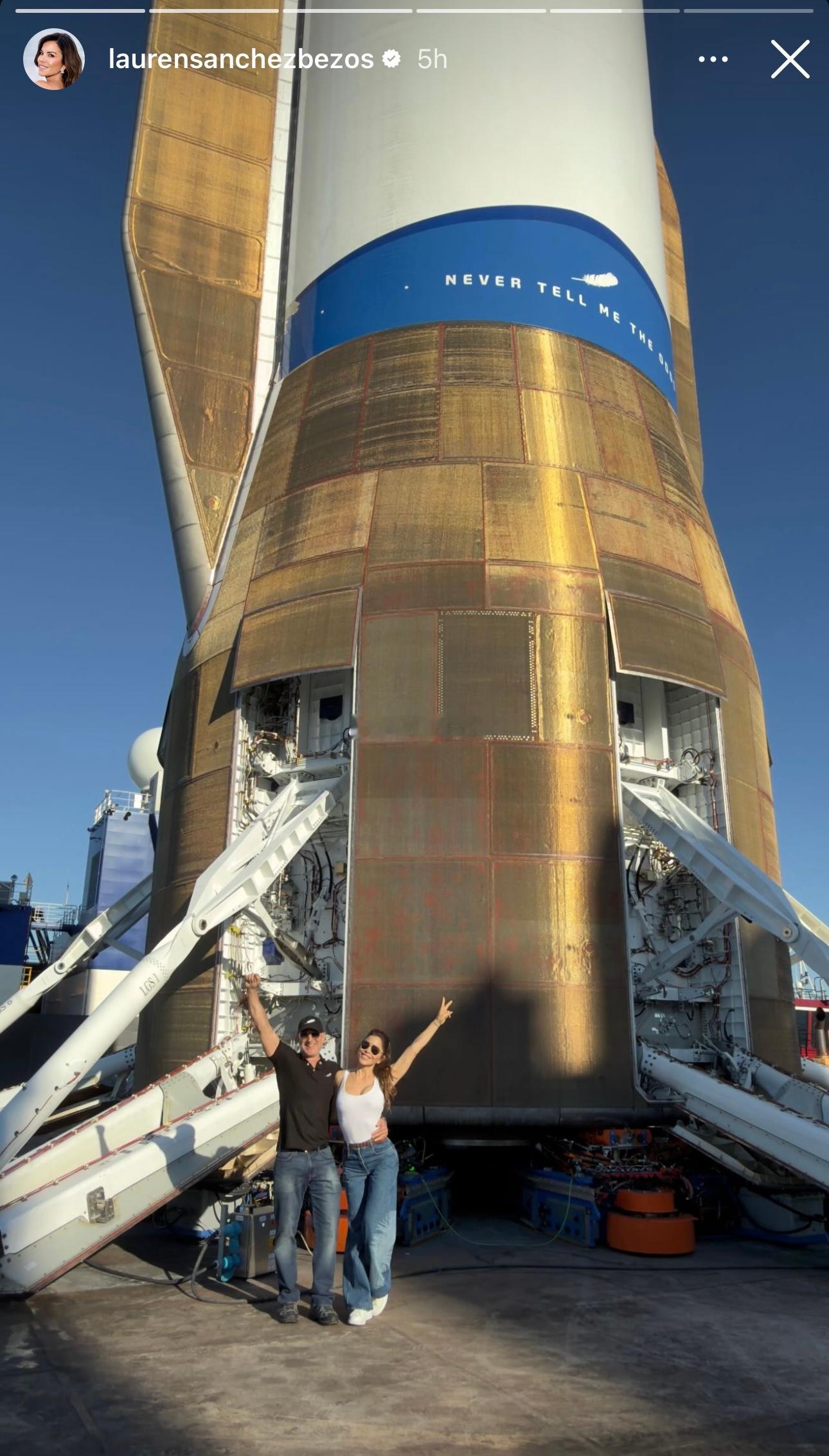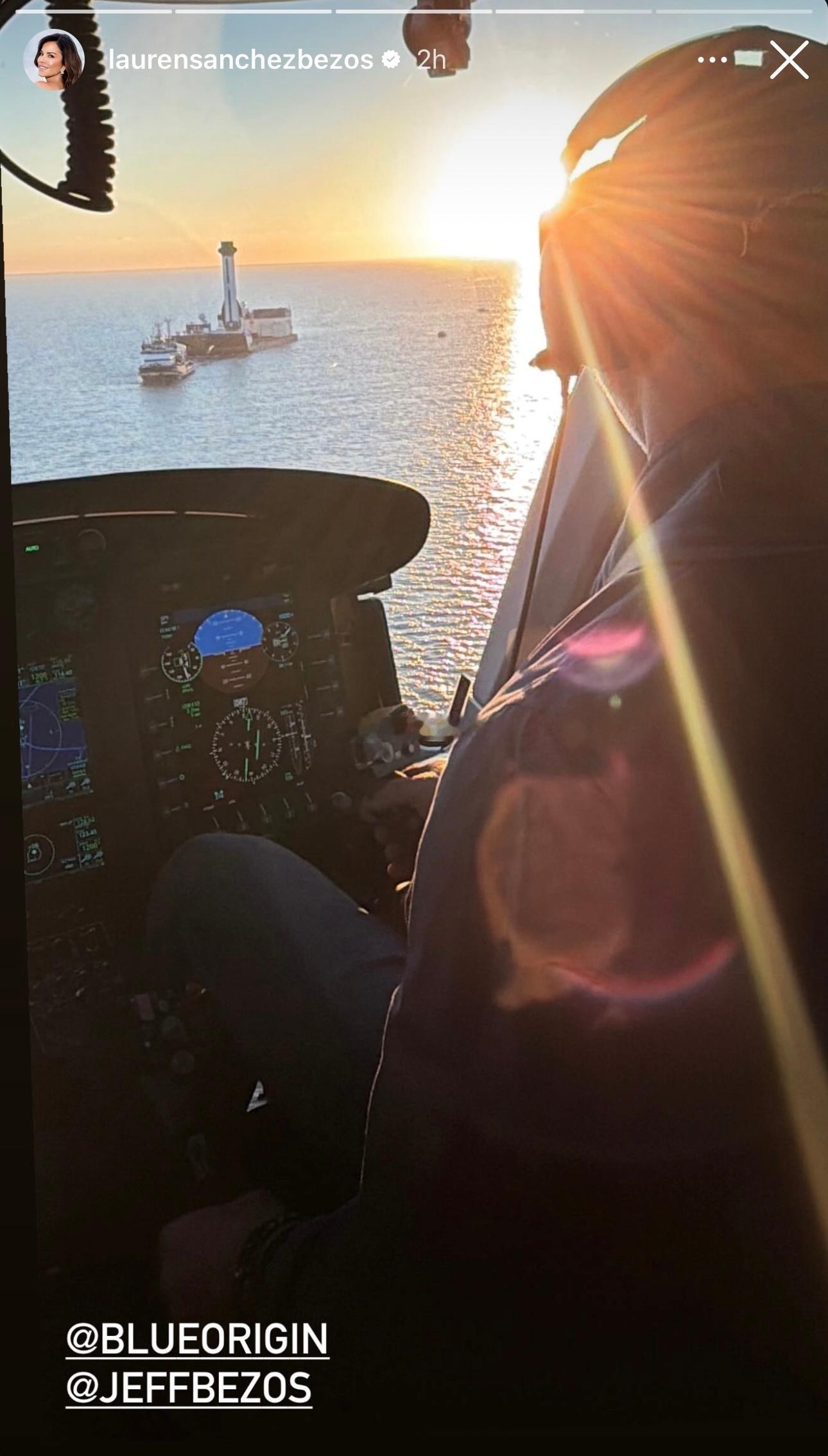 桑切斯和贝佐斯开着直升机🚁前往巨型新格伦火箭的助推器回收降落的登陆平台船Jacklyn号👇