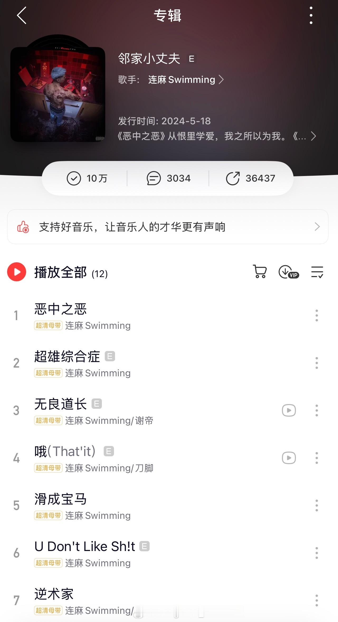 连麻《邻家小丈夫》网易云收藏突破10W+🔥 这张你最喜欢哪首?