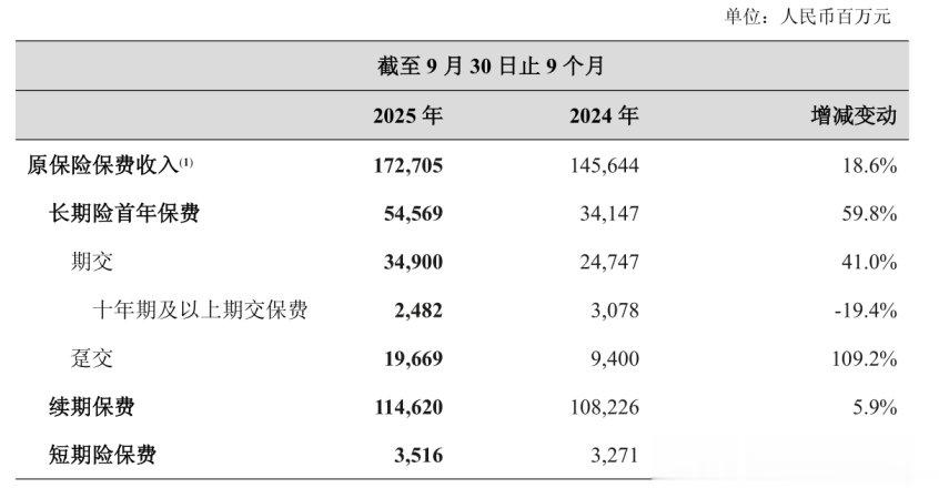 在负债端,保险业务同样展现出稳健增长与结构优化的双重特质。2025年前三季度,新华保险实现原保险保费收入1727.05亿元,同比增长18.6%。