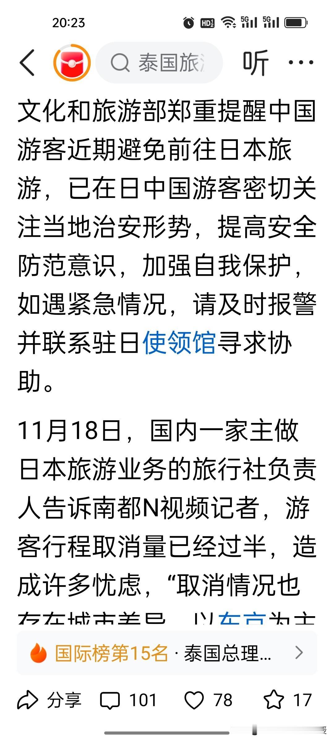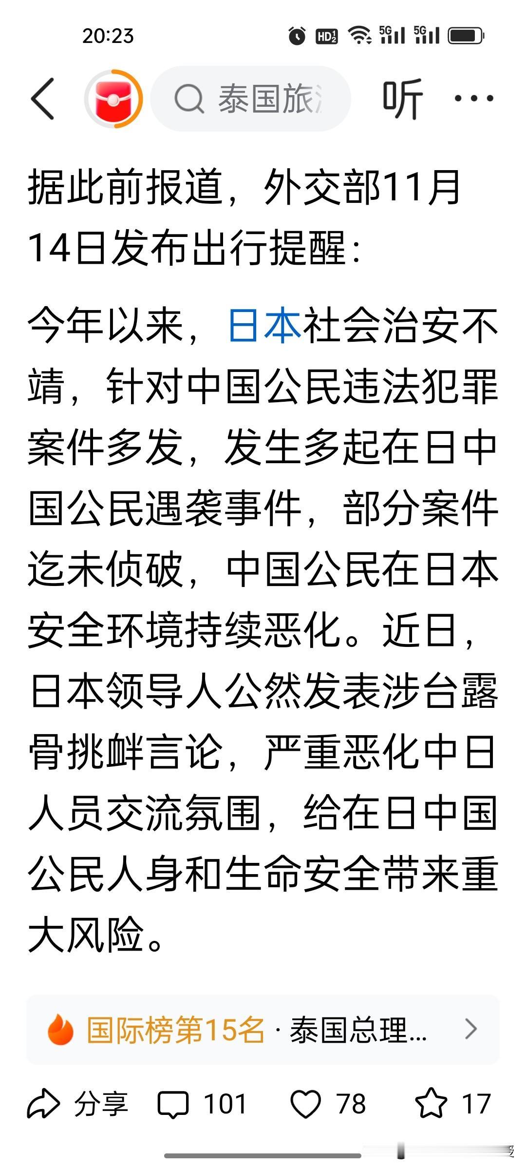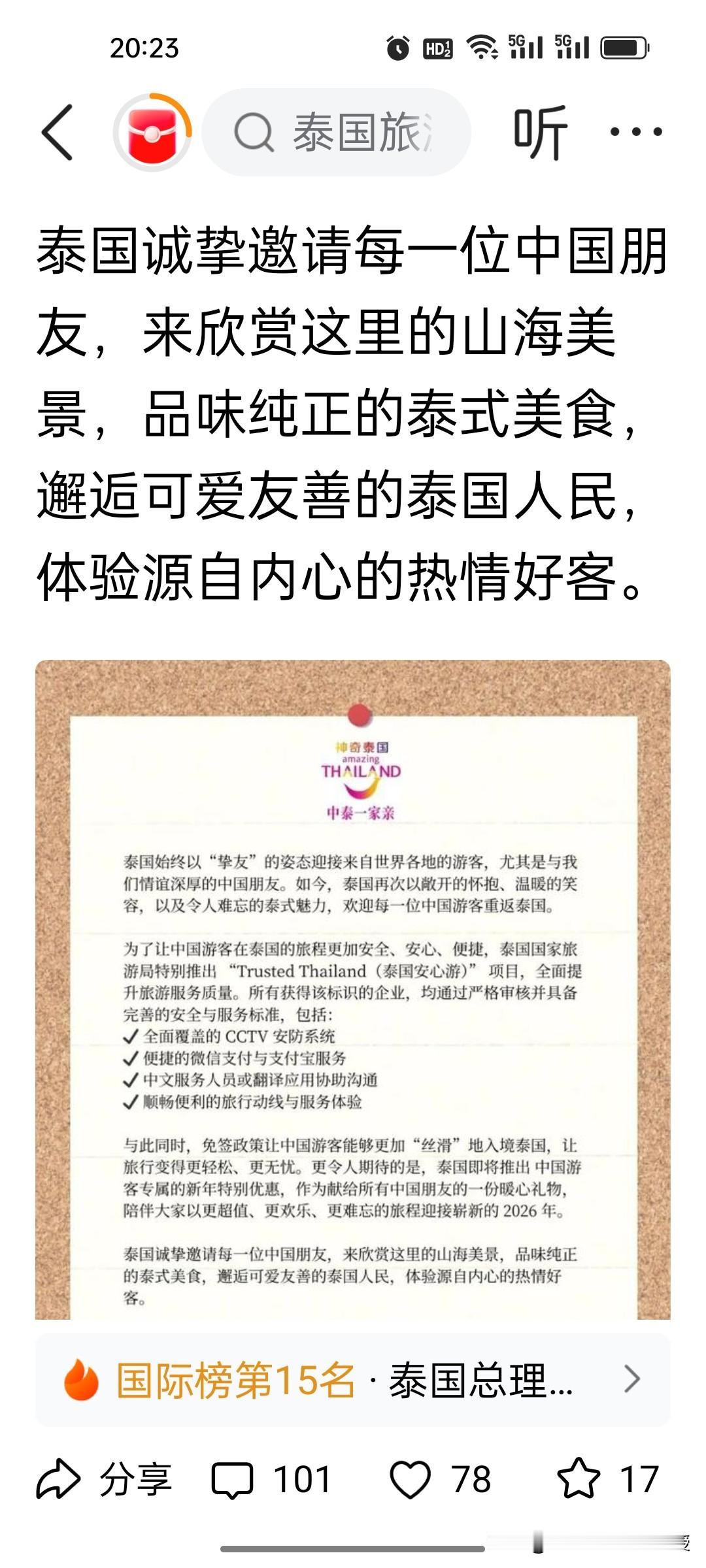 泰国真的是使劲浑身解数想要抓住这一波中国游客流量啊!外交部、文旅部发出“避免前往日本”的通知后,今天,泰国国家旅游局发文了,泰国推出了“安心游”项目,可谓是细致入微,安防系统,微信支付宝支付,一应俱全,称中国游客为“挚友”。 泰国太需要承接本要赴日旅游的中国游客这波流量了,泰国没有中国游客,旅游业一直不振,看图9,但是很多网友对东南亚国家旅游还是心有余悸。