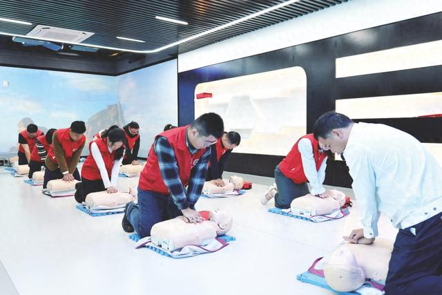 活动当天,工作人员向与会嘉宾展示心肺复苏等急救操作方法。记者游智超摄