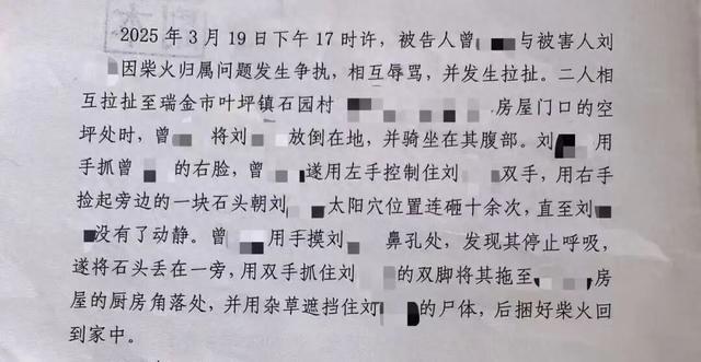 起诉书显示,曾某某左手控制被害人双手,右手捡起石头砸向被害人太阳穴位置,连砸十余次。案发时的一个细节,让毛女士深感气愤:“曾某某在把我妈妈杀害掉后,还在搬走我妈妈的柴火……”