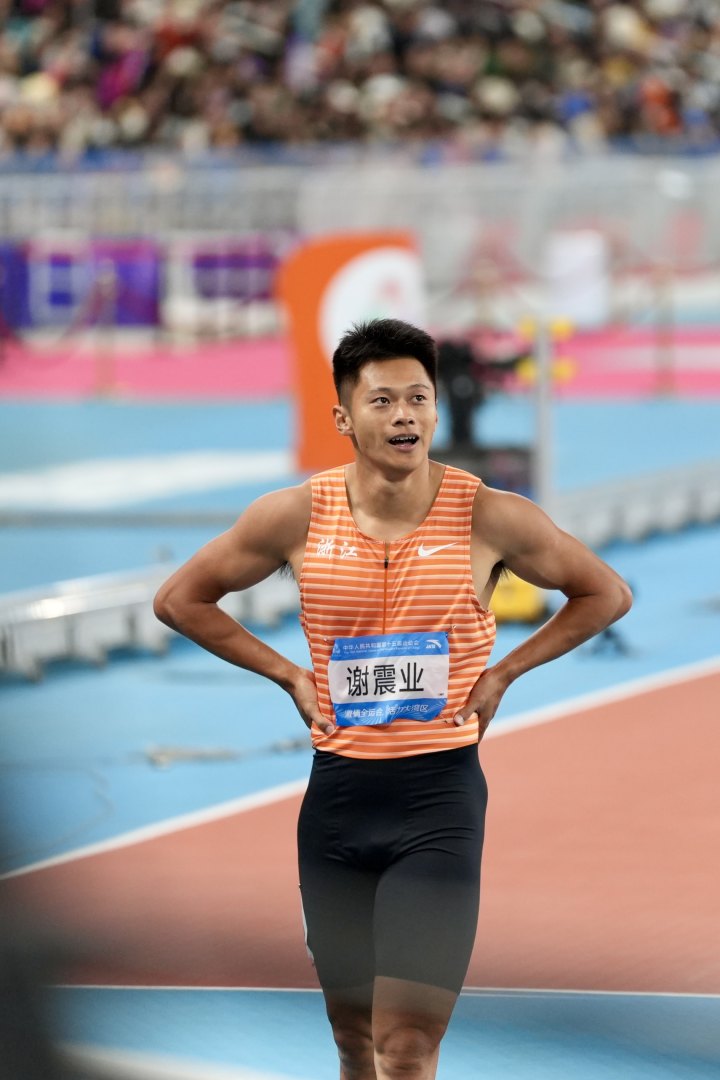 随后男子200米决赛,短跑名将谢震业第8道出场,最终20秒98排在第7位。