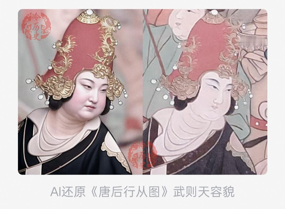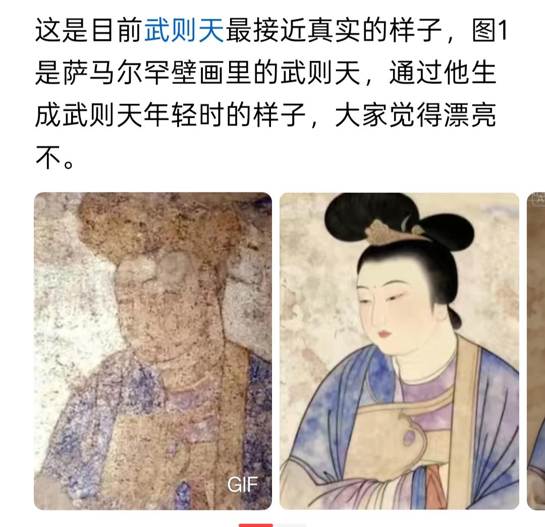 史料里的武则天:颜值高、有气场、不显老 根据《旧唐书》《新唐书》等正史记载,武则天的真实样貌我们可略知一二。 《旧唐书》中说武则天“龙睛凤颈,方额广颐”。意思是她的眼睛跟龙的眼睛似的,大而锐利有神;脖子修长挺拔,格外优雅;额头宽阔方正,脸蛋圆润饱满。用今天的话说,她是一个“宽额头、圆脸蛋、大眼睛、长脖颈”的大美女。 武则天的样貌还有旁证:她的女儿太平公主的长相,在正史中有明确记载。《旧唐书》《新唐书》《资治通鉴》均一致记载太平公主“丰硕,方额广颐”,即体态丰满、额头宽阔、脸颊圆润。同时史料记载武则天说过太平公主“类己”(长得像自己),这可以作为推测武则天样貌的可靠资料。 她的气质更不一般,《则天大圣皇后哀册文》里说她“奇相月偃”,意思是不仅长得出众,面如满月,饱满匀称,还浑身透着雍容华贵的“帝王气场”,让人觉得她明显不是普通人,是富贵之人。 武则天的长相是符合唐代人审美观的,当时男人喜欢丰满型女人,否则不可能选她入宫。14岁时,武则天因为长得好看,被唐太宗选进皇宫,封了“才人”的职位,还特意赐了“武媚”的称号——“媚”就是妩媚、好看的意思,能得到皇帝赞美,可见她年轻时的颜值很高。 她保养得好,或许更科学点说是她的基因好。《资治通鉴》记载,武则天都76岁了,眉毛还长出了新的细眉,形成“八字重眉”。史料里提到她常用益母草做护肤品、熬制保湿药膏,所以年纪大了也不显老。 而最贴合正史描述的画作,当属北宋摹本的《唐后行从图》,这图“还原”得最到位。这幅画的原型出自唐代宫廷画师张萱之手,他生活的年代和武则天晚年有重叠,所以有可能亲眼见过武则天,即使没亲眼所见,也听说过、打听过武则天的样貌。后来北宋画师临摹时,想必也尽量保留了原作的主体风格。画里的“唐后”形象,是比较符合正史中所说的。其中关键的是,画中“唐后”身着只有皇帝才敢穿的双肩绣日月纹日月袍,被二十八人簇拥着出行,这等排场刚好匹配武则天的女皇身份——其他皇后没胆量也没资格穿皇帝服装。 反观其他常见的和现存的武则天画像和塑像,基本上都不靠谱。 1. 广元市皇泽寺武则天石刻像,建造于武周时期,是目前国内唯一的武则天真容石刻像。宋代地理典籍《九域志·利州》的记载:“皇泽寺,有唐武后真容殿。按:武士彟为利州都督,生皇后于此。” 武则天在公元690年称帝建立武周后,为纪念自己的出生地广元,将当地寺庙赐名“皇泽寺”,并敕令雕刻自己的真容像;而造像呈现的是“晚年武则天”形象(她63岁登基),因此可推断这尊造像的开凿时间在她称帝后的武周时期(约690年之后),属于官方主导的纪念性造像。这尊造像以整块砂岩雕凿而成,造像的服饰跟佛像风格无二。再观它的面部形态,跟正史记载明显不吻合。再加上它后来经过修复和镀金,初始状态无存,可谓面目全非。所以不宜认定为武则天的真实样貌。 2. 洛阳市龙门石窟卢舍那大佛,虽传说是按武则天容貌雕刻(无史料可佐证此传说),但终究是佛像,佛像特征明显,连女性特征都未能体现,可信度等于零,还不如皇泽寺的石刻像。 3. 明代《历代古人像赞》里的武则天版本,服饰是明代风格,样貌和正史描述差得太远。 4. 撒马尔罕博物馆的武则天壁画,也不可靠。①画中人物是不是她无法确定;②她穿的宝蓝色衣服不符合唐朝皇后礼服规制,是中亚本地的贵族配色;③画师是粟特人,没见过武则天,还把龙舟、狩猎场景加了本土想象,服饰、器物都对应不上。 综合来看,《唐后行从图》是目前能找到的、和正史里武则天形象最契合的画作,尽管它不大可能跟武则天本人相貌完全一致(必然有美化),参考价值相对最大。