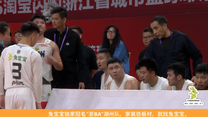 第三节,50比61,湖州队落后11分。哨响前,刘卓一个三分收尾。