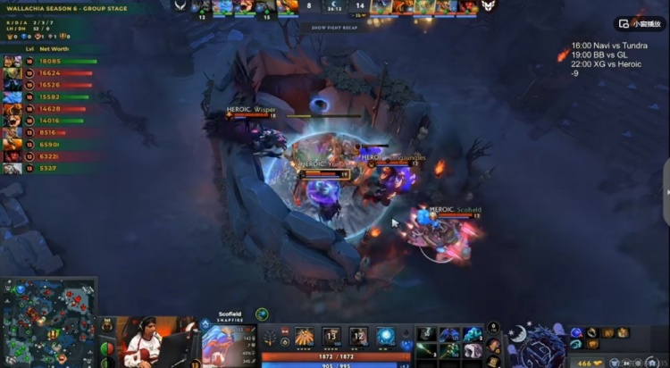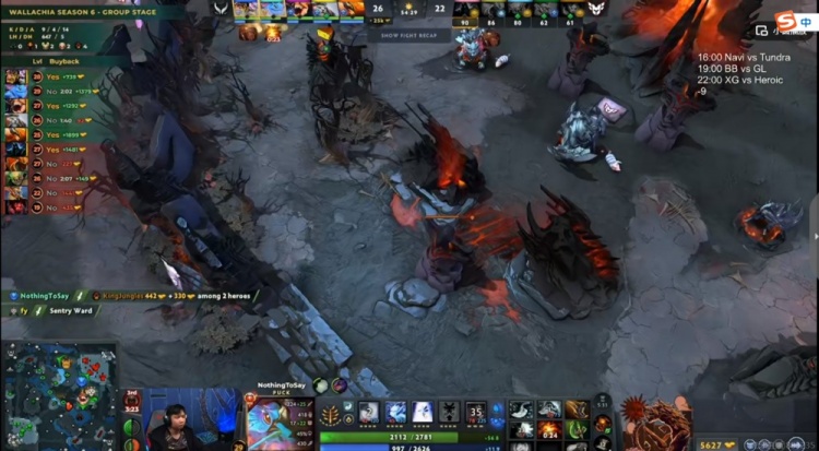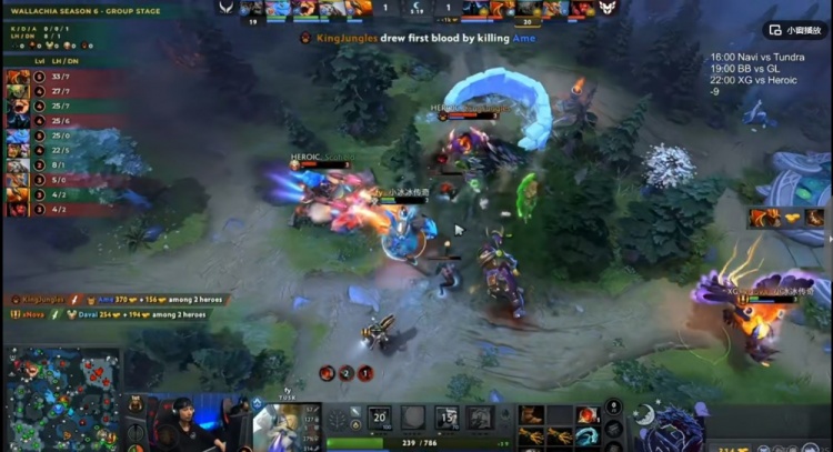 [22分钟]Heroic开雾正好撞脸NTS帕克+xNova凤凰,虽然Fy海民雪球救+凤凰变蛋但是对手先行落位打掉了凤凰蛋!双方互换后排双酱油之后Ame炼金被追死!这波打完是Heroic的2换3!