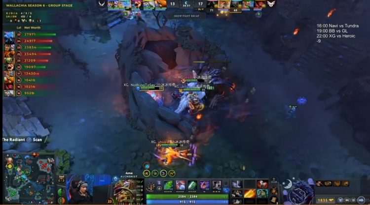 [46分钟]河道团Heroic双羊刀一人羊一个但是伤害根本不够!xNova凤凰变蛋配合队友逐个击破,留住了对手双酱油还打出了Yuma亚巴顿大招!随即肉山团,双方打出2换2,但是NTS和Fy都交出买活,Heroic这边则是交了个DavaiLama孽主的买活!随后XG卡住对手少个人的timing直接抱团拿下肉山!NTS帕克带盾!随后Heroic集火强杀Xxs獣但是双酱油直接被NTS帕克开飞切完了!买活的DavaiLama孽主被XG围殴带走!这波XG打出1换3!DavaiLama孽主买活死!XG反超12K经济!