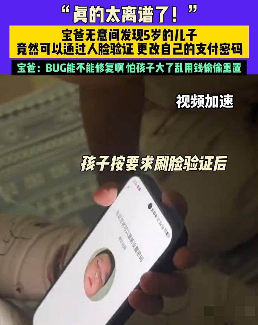 这一看就是亲生的!广东,一位宝爸把自己的手机给5岁的儿子看动画片,无意间却发现,儿子竟然能通过人脸识别更改他的支付密码。说出来妻子还不相信,于是他让儿子亲自演示了一番。 这场景,真是让人又好气又好笑。谁能想到,一场本来平平无奇的亲子互动,居然会变成这样的技术展示?看着宝爸满脸的自豪,心里还不免有点笑意。他拿着手机,示意妈妈看看这个神奇的操作,儿子轻松地用自己圆乎乎的小脸对着手机一刷,就直接通过了身份验证,成功更改了支付密码。看到妈妈的震惊表情,宝爸的那种我儿子是亲生的表情,简直甩了所有的自豪感,丝毫不掩饰地展露了他的小得意。 不过,这事背后隐藏的科技风险,其实让人不禁担忧。视频里的宝爸,心里肯定在想着看,把他心里美的,而网友们则用一种半开玩笑的语气回应:告诉你一个好消息,跟一个坏消息,坏消息是你的密码不安全,好消息是你的儿子是亲生的。这话说的虽然有点幽默,但道理却不容忽视。 我邻居家就出过类似的事。他家小子才上一年级,拿着他爸的手机玩,不知怎么就点开了一个玩具直播,对着镜头咧嘴笑了笑,居然就把单下了。等他爸发现时,快递都快到门口了,退也退不了,气得他爸把手机密码改得复杂得自己都快记不住。 你说现在这技术,是方便,但也太“好说话”了点。人脸识别刚出来那阵,大家都觉得这玩意儿高级,不用输密码,刷个脸就行。可谁能想到,自家娃的脸也能当“钥匙”用?尤其小孩子,对手机上那些花花绿绿的按钮好奇得很,说不定哪天手一划,就把家里的买菜钱给花到游戏皮肤上去了。 那位广东宝爸现在可能还觉得挺骄傲,自家娃聪明,连手机都能“搞定”。可真等账单来了,或者哪天手机里的重要信息被娃瞎点着泄露了,估计就笑不出来了。技术这东西,还是得有点“分寸”,不能啥都靠一张脸说了算。咱们当大人的,也得多个心眼,别让手机成了孩子手里的“闯祸工具”。 各位读者你们怎么看?欢迎在评论区讨论。